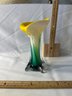 Vintage Art Glass Hand Blown Calla Lily Yellow Green And White Glass Vase Excellent