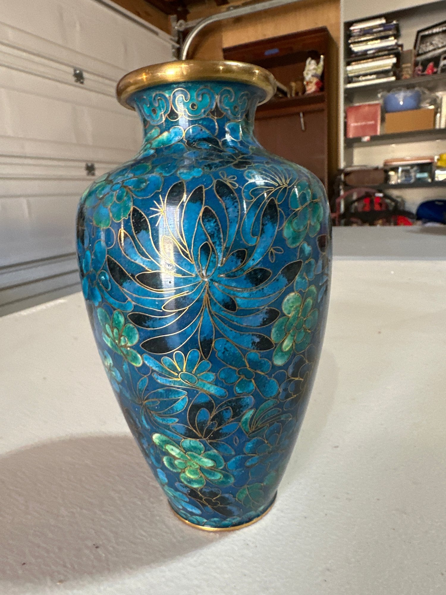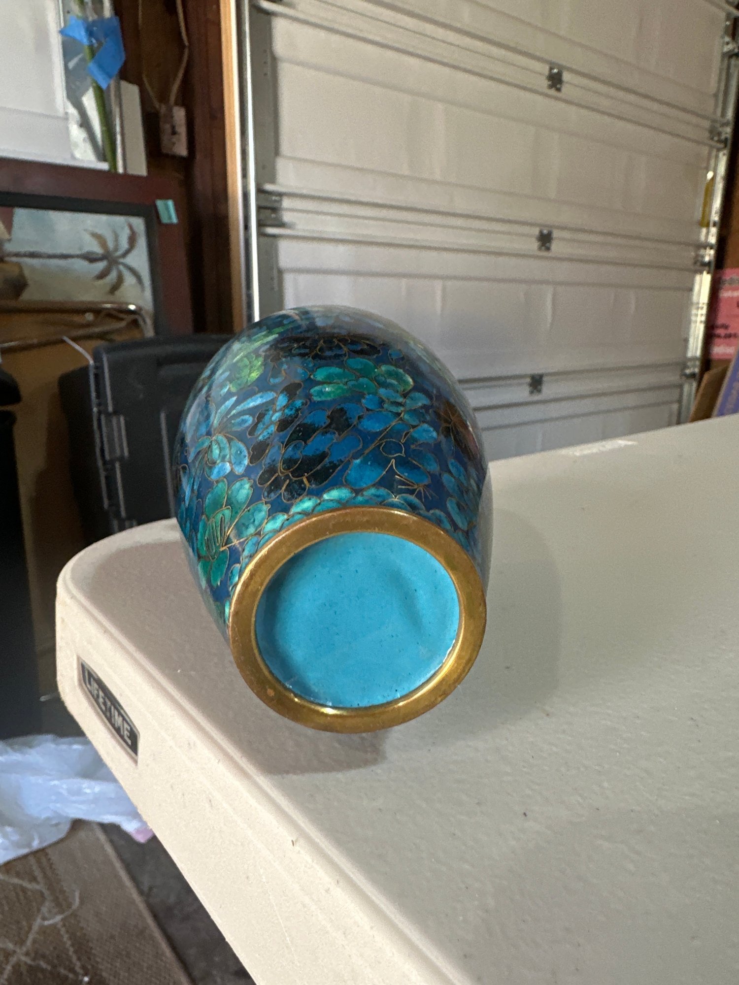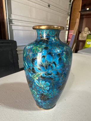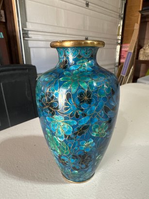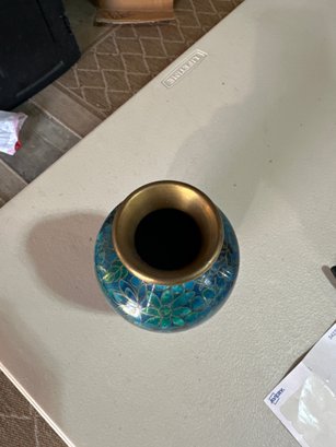 Vintage Brass Enamel Chinese Vase 6 1/2 Inches By 4 Inches Beautiful Piece