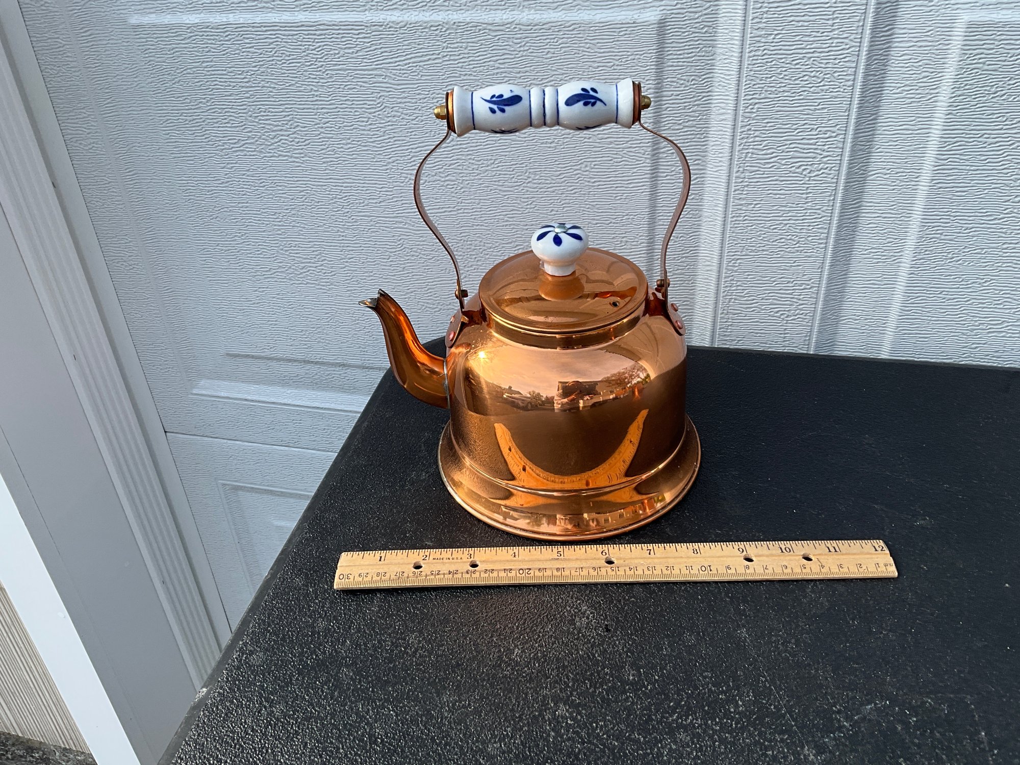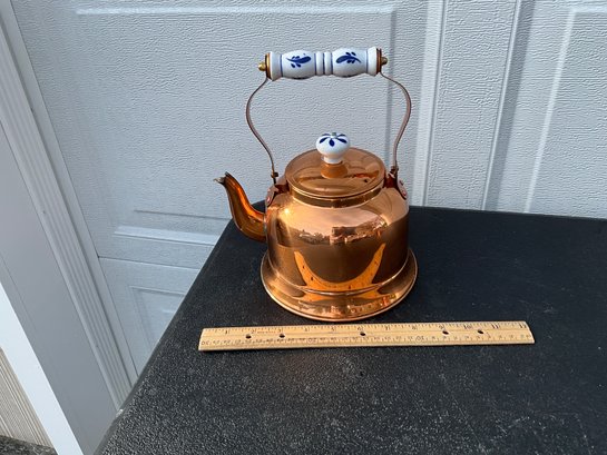 Vintage Himark Tea Kettle Copper / Brass Teapot Retro Ceramic Handle