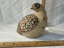 Vintage Mexican Tonala Corcho Pottery Quail Hand Painted Enameled Sandstone Signed Netzi