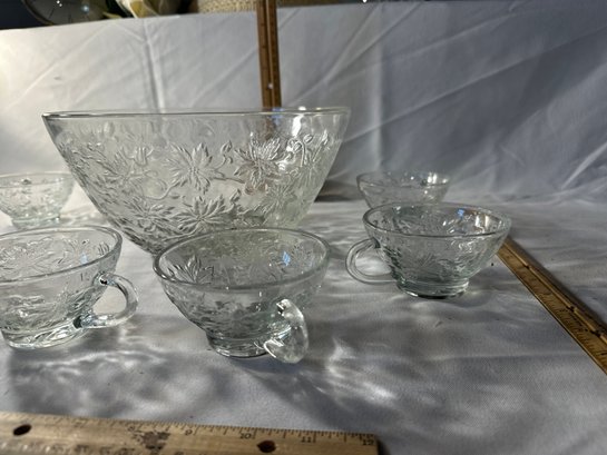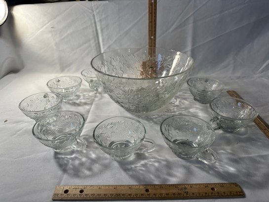 Vintage Princess House Fantasia Punch Bowl With 8 Cups Excellent