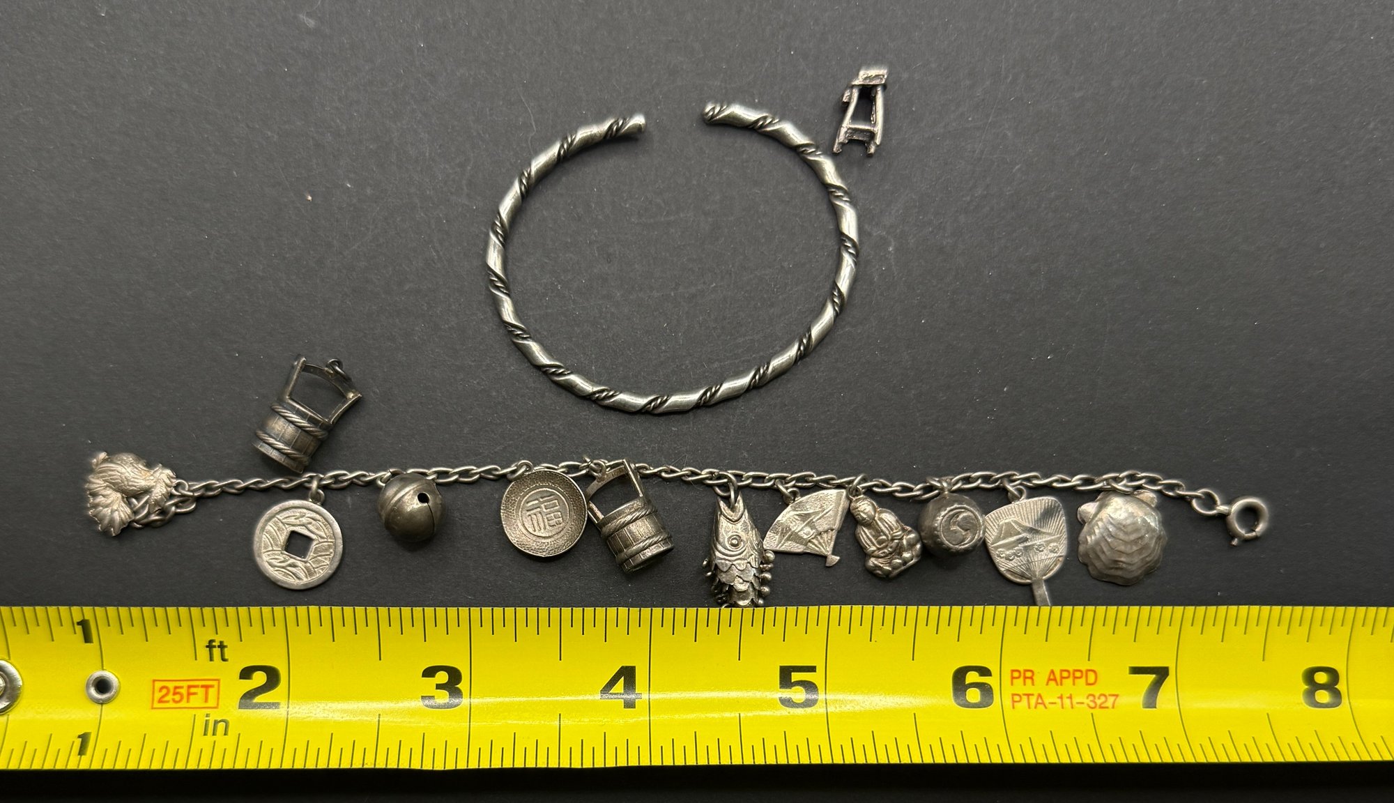 These are unmarked but test positive for silver on acid test. Exact silver content unknown.