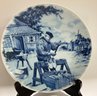 Vintage plate in blue and white manufactured by Ter Steege Bv. It is hand decorated and measures 9 1/4” in diameter. In excellent condition. Plates show a clog maker at work.