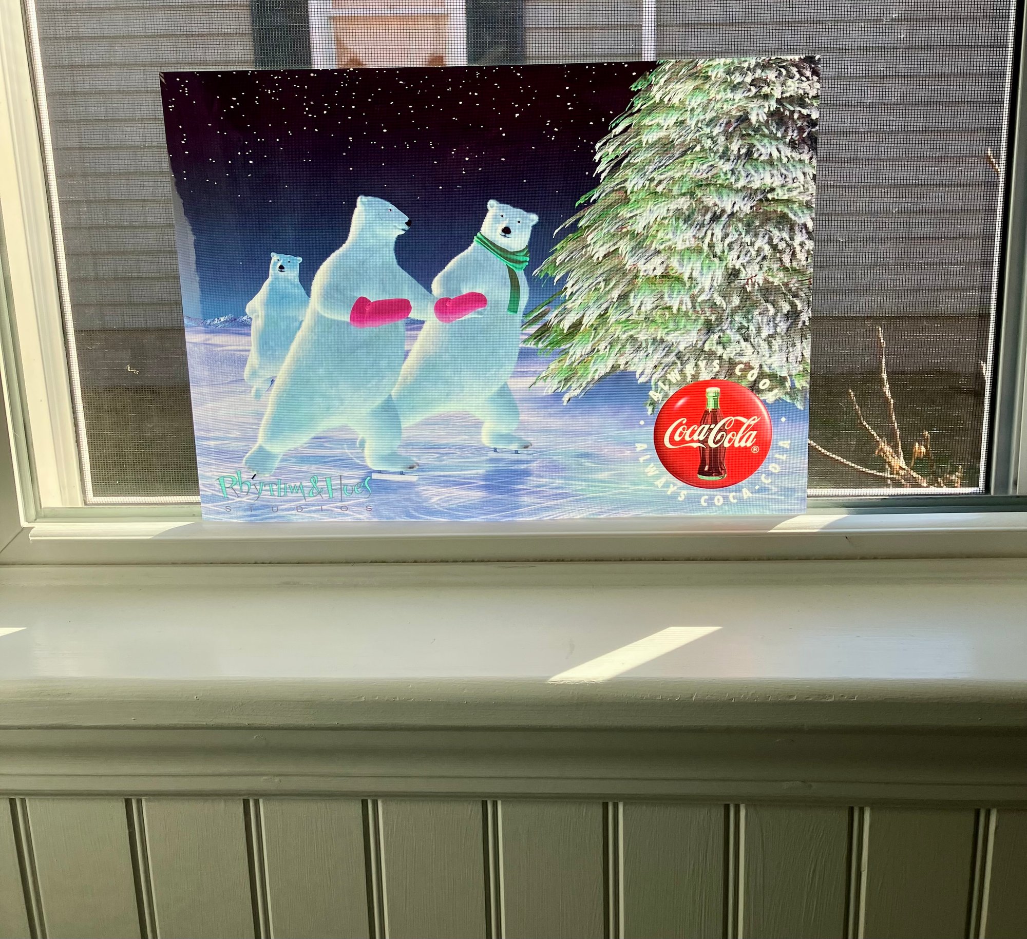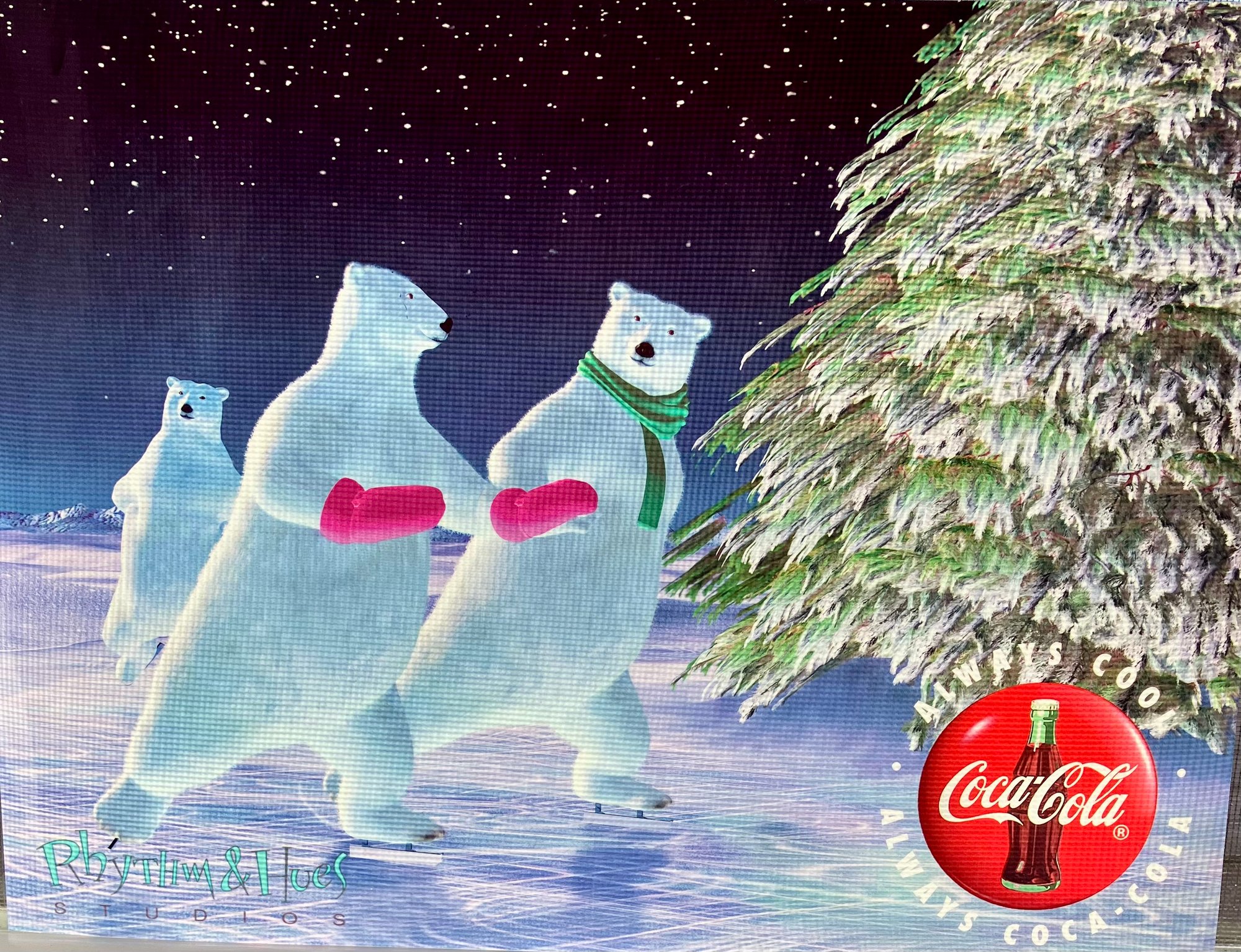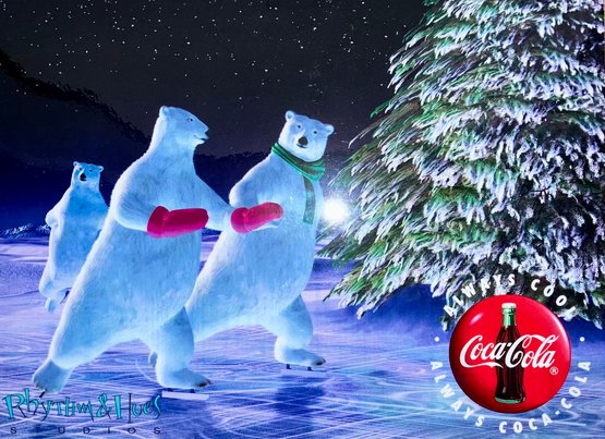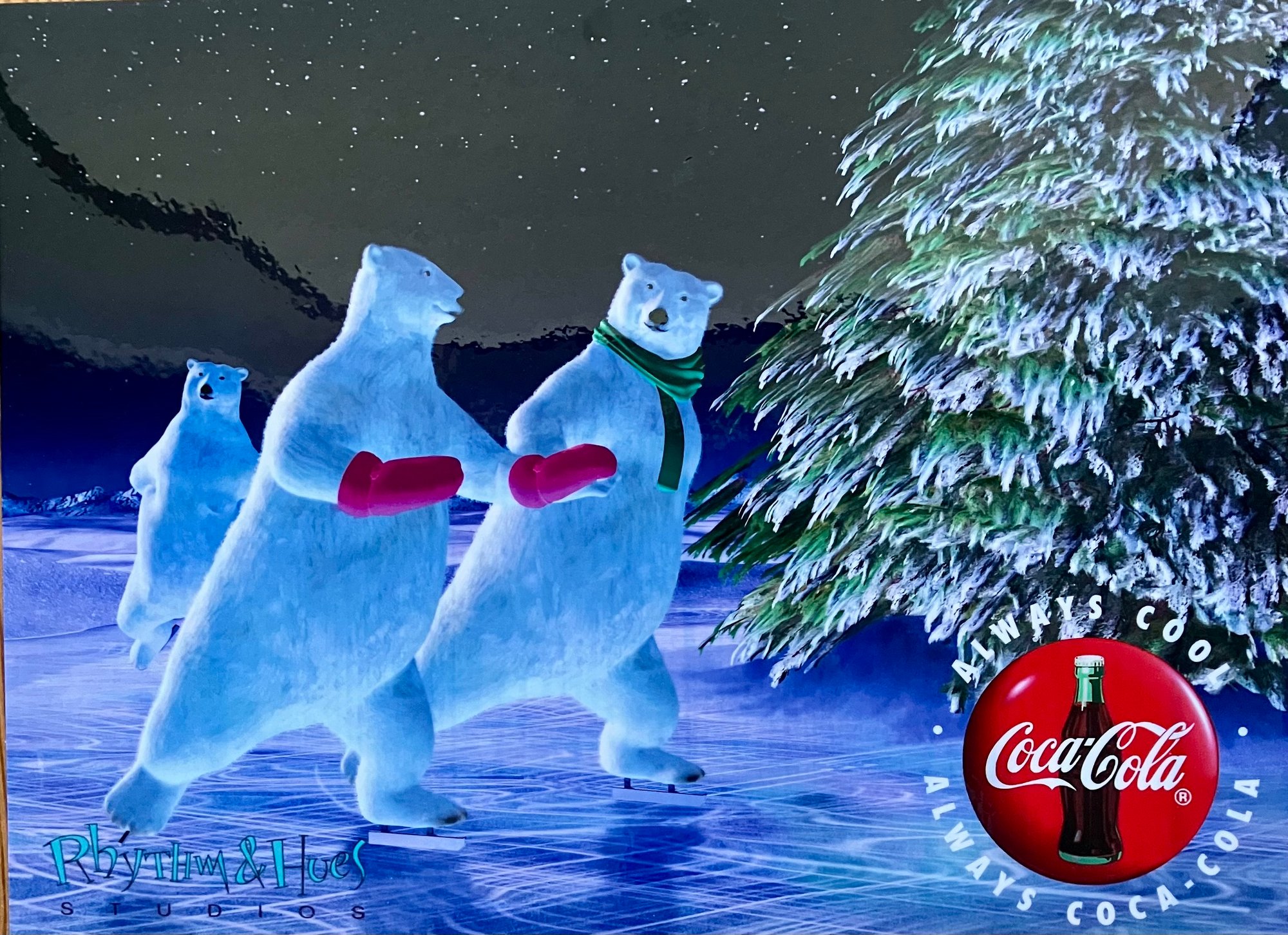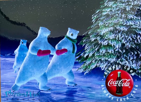 1990s Coca-Cola and Rhythm & Hues Studios Cel "ENCHANTED EVENING" - Polar Bears Skating on Ice. Printed on celluloid acetate. Measures 10x13".