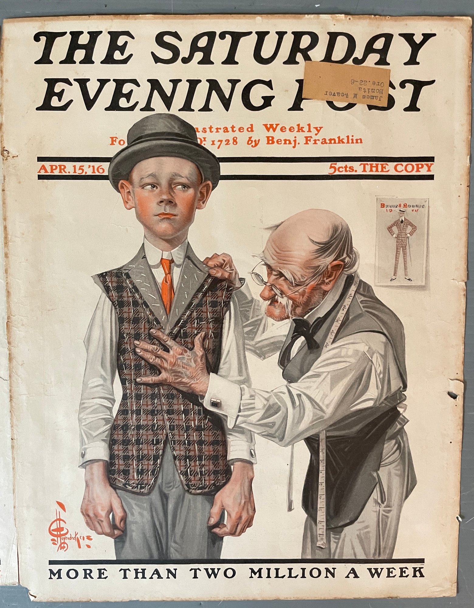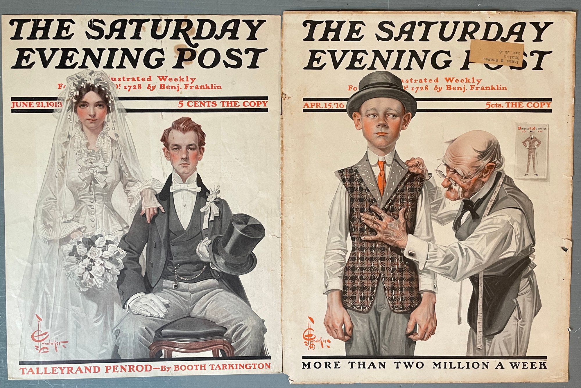 2 SATURDAY EVENING POST 1910s J.C. Leyendecker Original Covers
