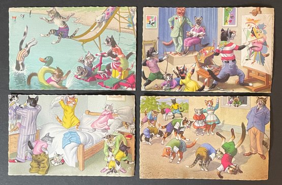 5 Alfred Manzier Anthropomorphic Cats Gardening Belgium Postcards