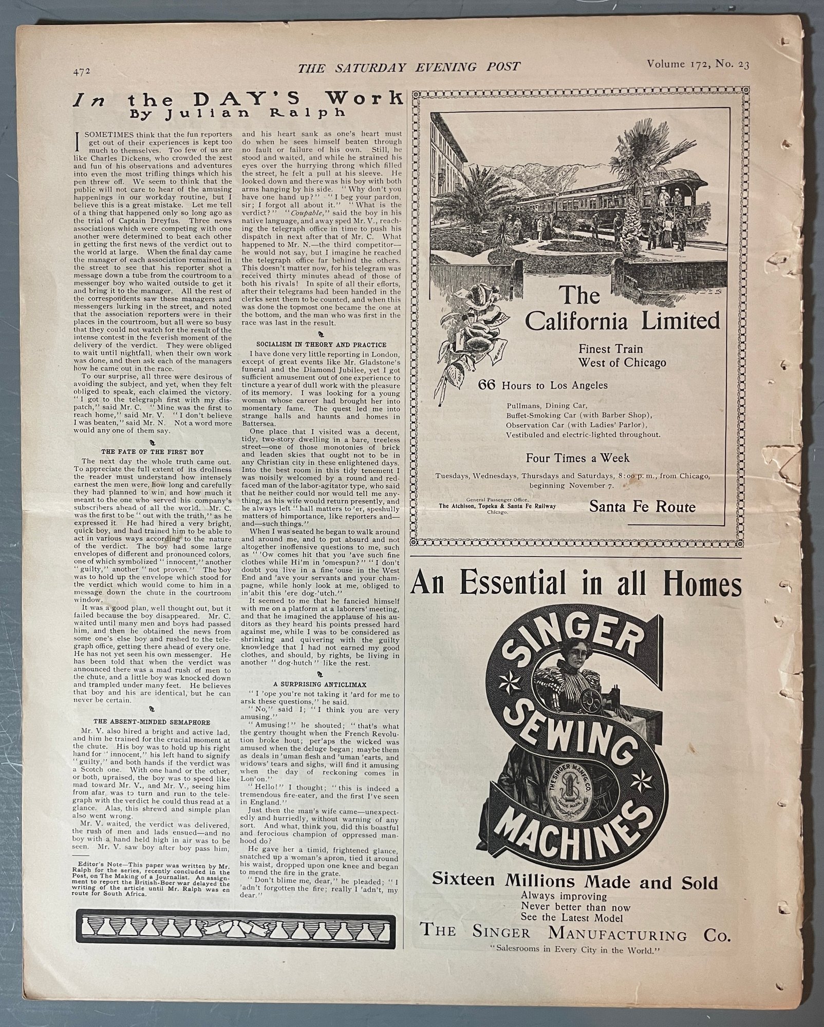 SATURDAY EVENING POST Dec. 2nd, 1899 Full Magazine. Some detached pages.