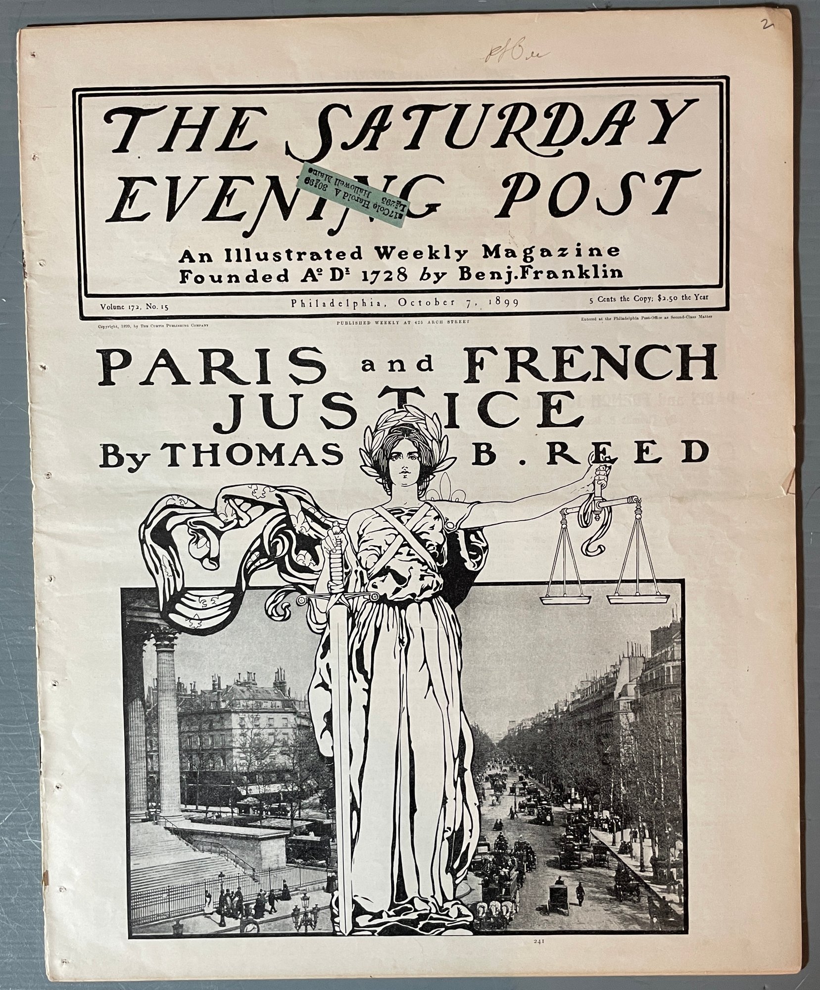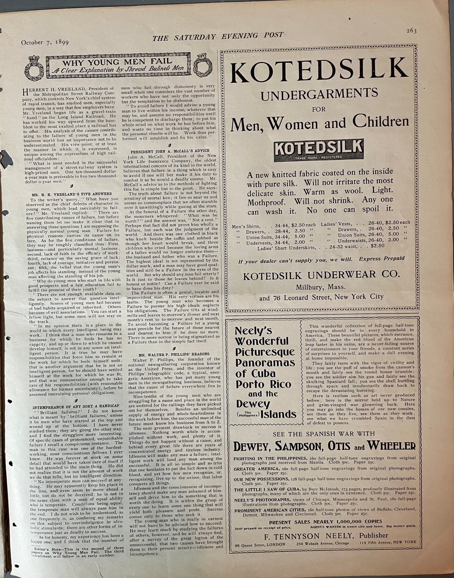 Antique Ephemera SATURDAY EVENING POST Oct. 7th, 1899 Full Magazine