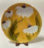 Lovely majolica plate depicting white daisies on a bright yellow plate. The leaves are in shades of green. There is no crazing or cracks. Plate measures 9.5” in diameter.