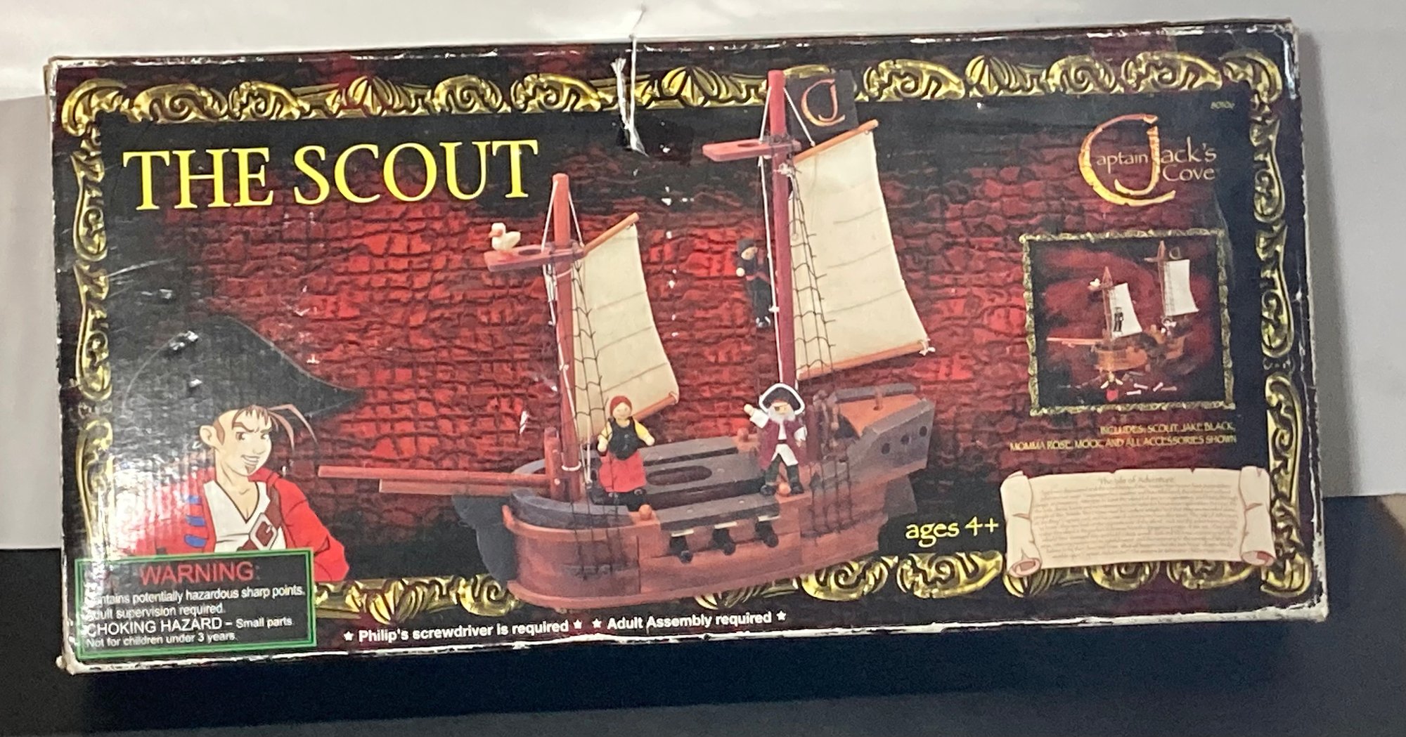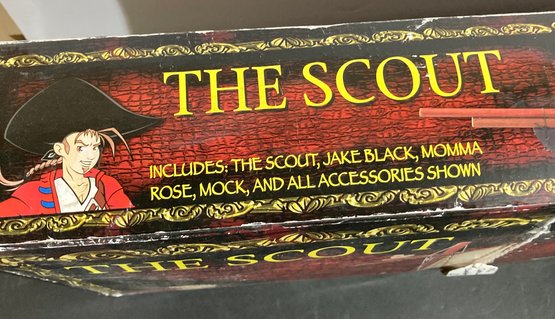 Open box but all the parts are included for The Scout. Includes The Scout, Jake Black, Momma Rose, and Mock. An adult and phillips screwdriver are required as per the box.