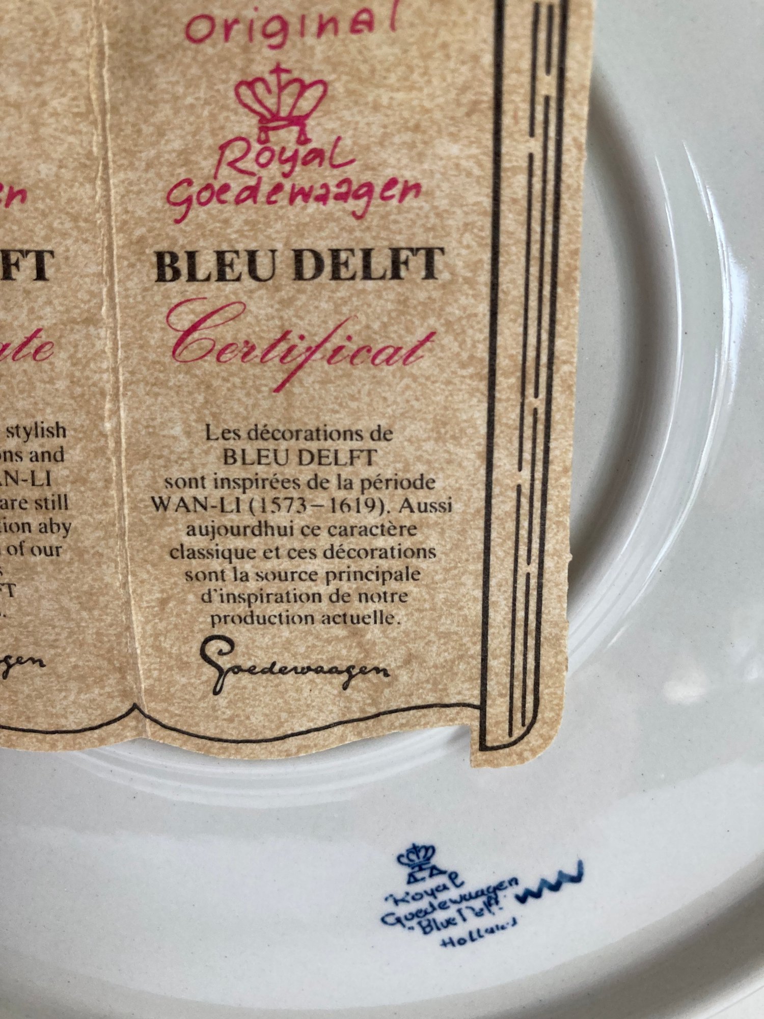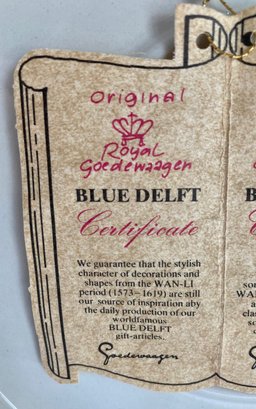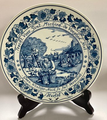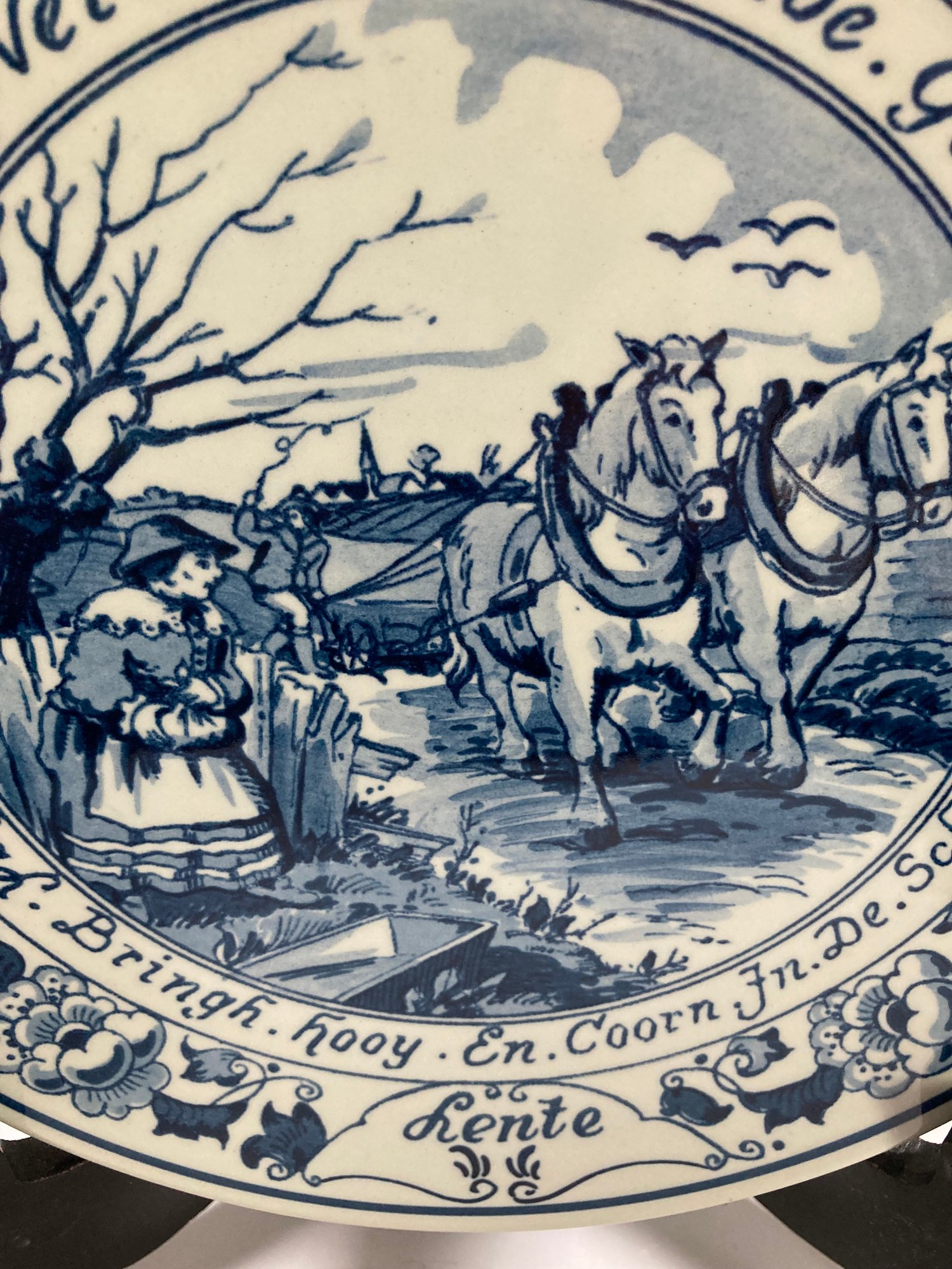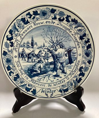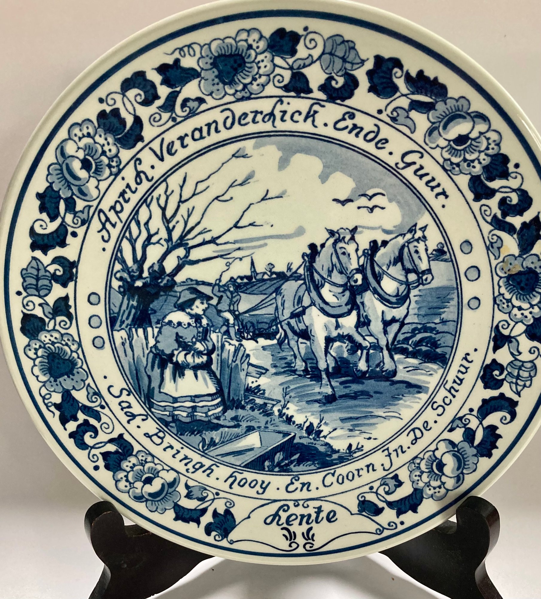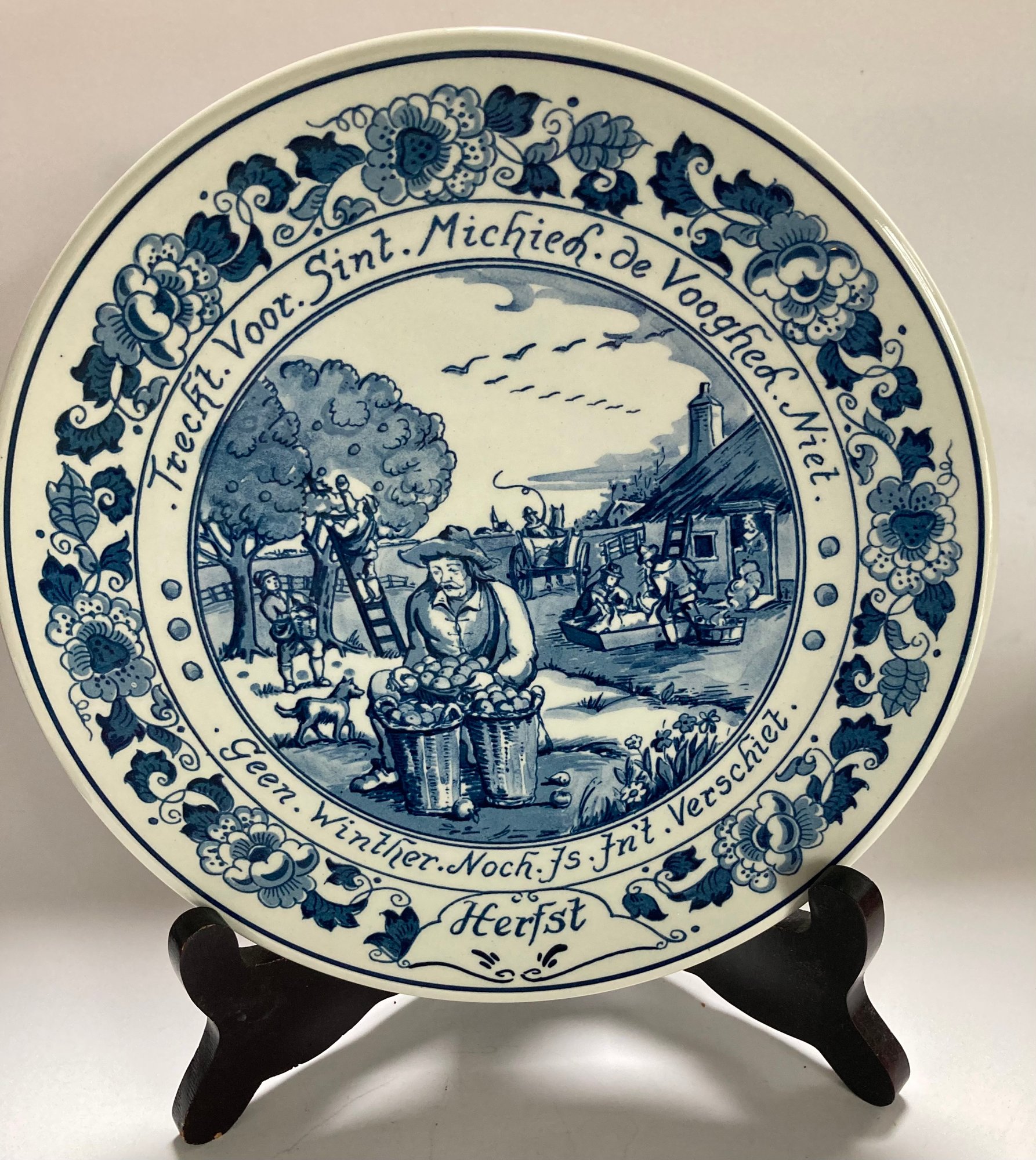 Set of four plates depicting the four seasons manufactured by Royal Goedewaagen. The plates are hand painted and are in excellent condition. They measure 9” in diameter. Royal Goedewaagen is one of the oldest earthenware factories in the world Netherlands