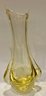 Free form organic vase designed by Miroslav Klinger for Zelezny Brod Sklo (ZBS) in Czechoslovakia. Vase is a lovely citrine color and measures 11 1/2.” The round emblem in the front has PRAHA (Prague in Czech) and a city skyline. There are no chips, nicks or cracks.