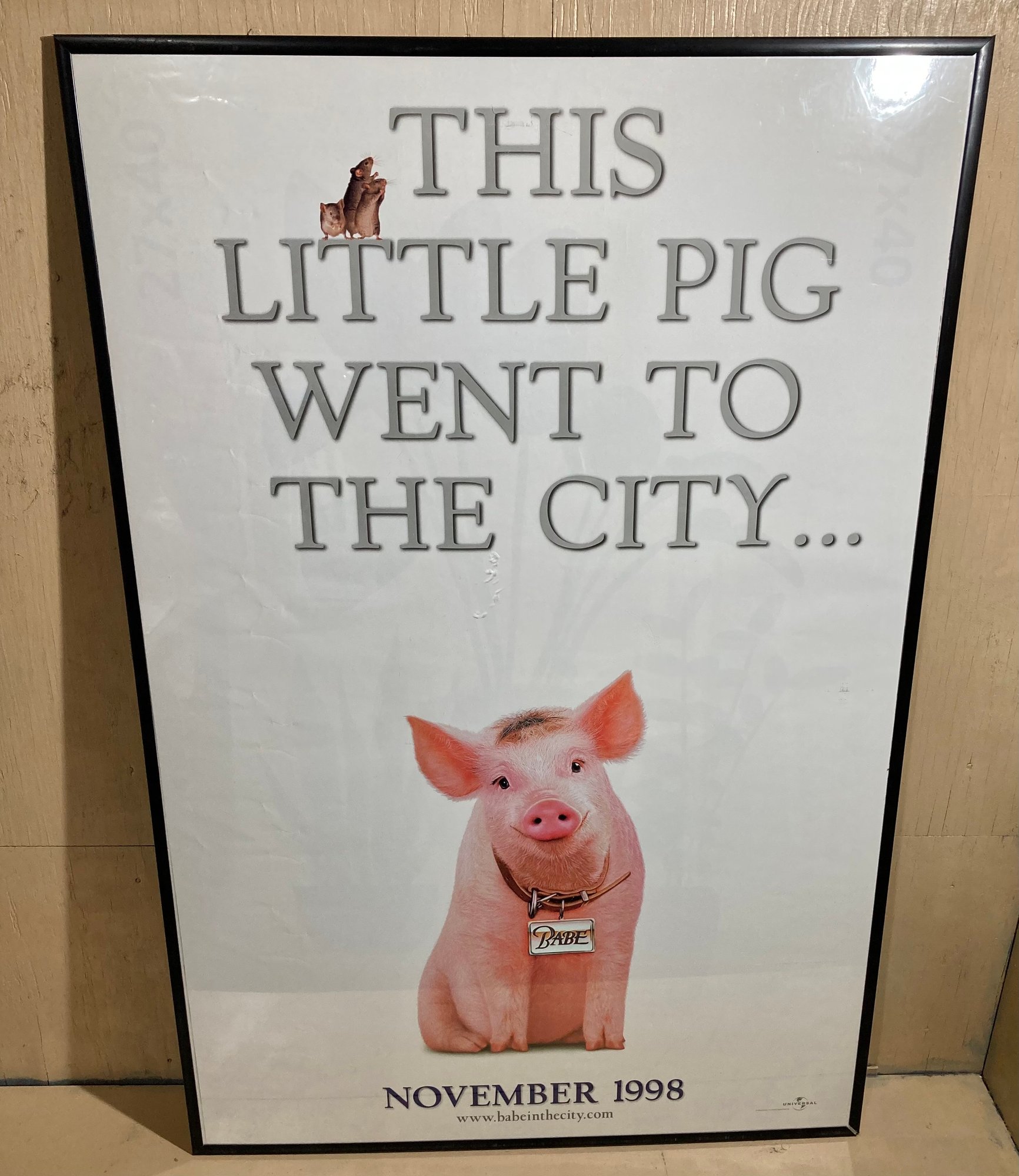 Original movie poster for Babe, a 1995 family fantasy film. The film also stars James Cromwell and Christine Cavanaugh. The frame measures 27” x 40”
