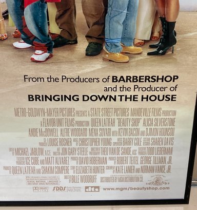 Beauty Shop is a comedy released in 2005. It stars Queen Latifa, Alicia Silverstone, Andie MacDowell, Mena Suvari, and Kevin Bacon. Frame measures 27” x 40”