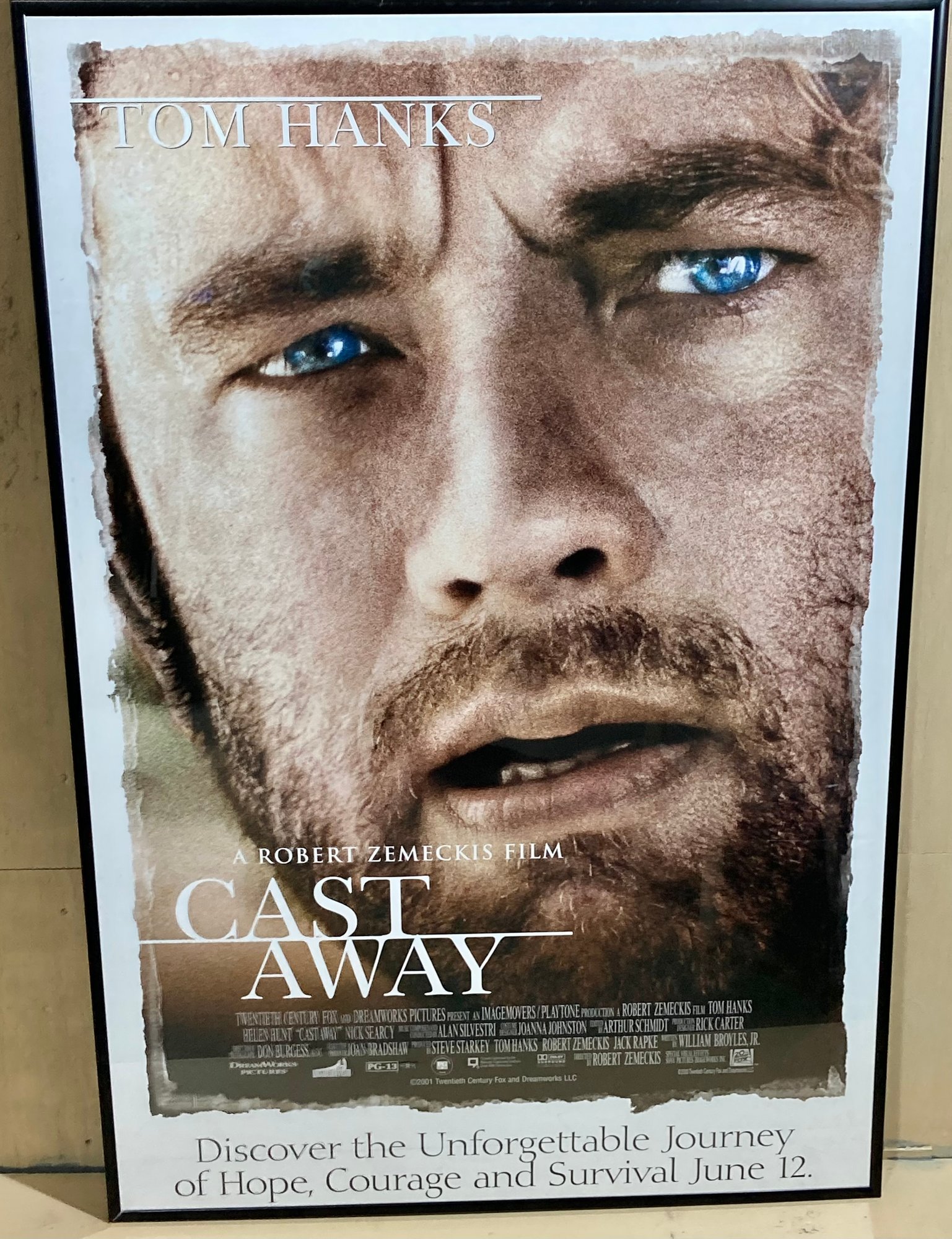 Castaway is a 2000 survival drama film starring Tom Hanks. And a volleyball. Frame measures 27” x 40”