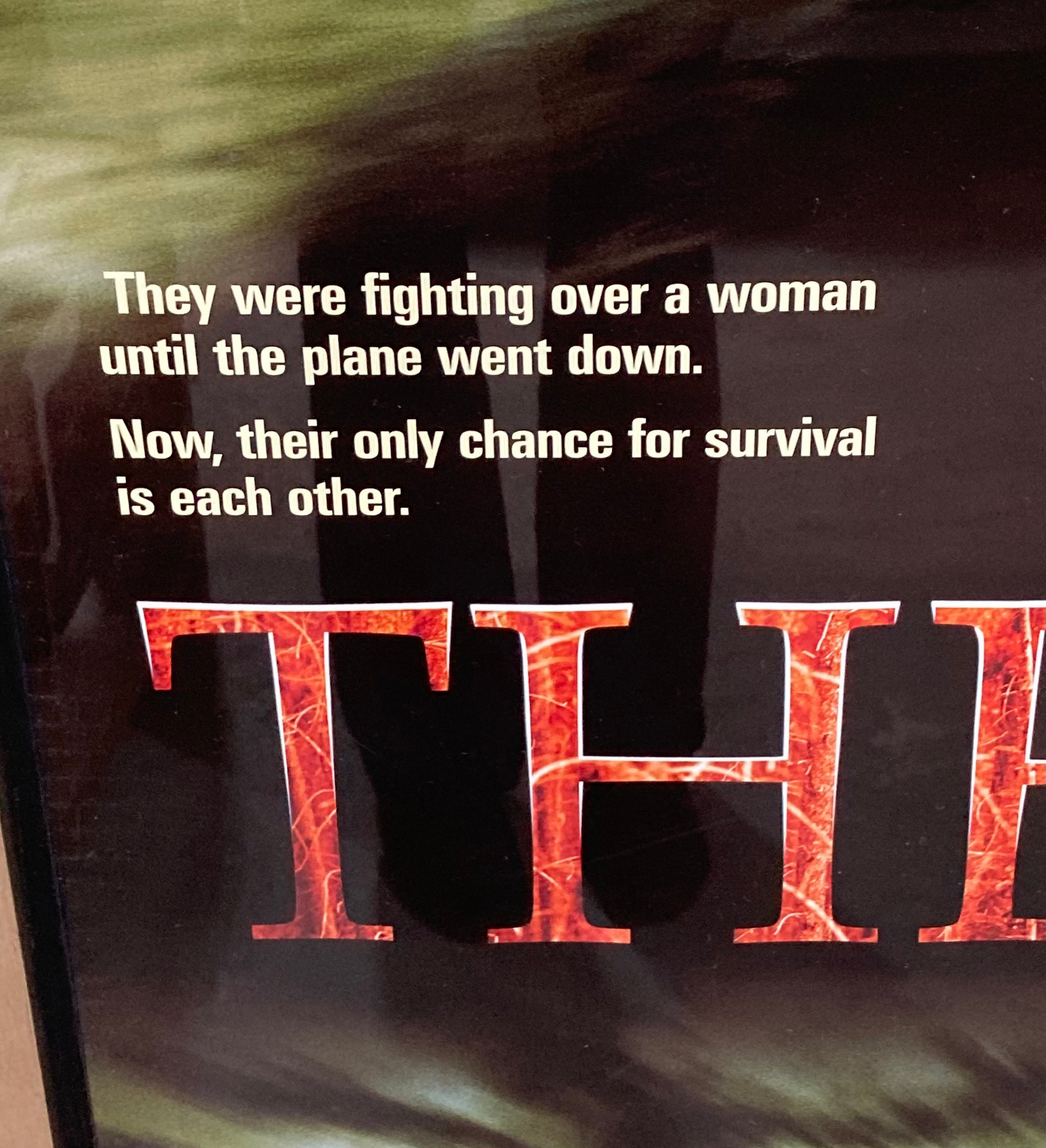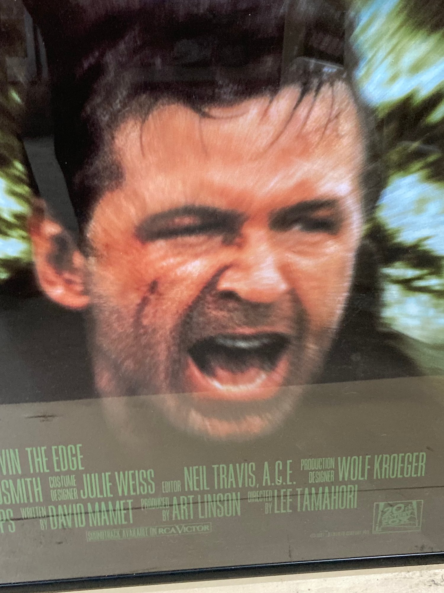 Original movie poster, The Edge, released in 1997. This thriller adventure stars Anthony Hopkins and Alec Baldwin. Frame measures 27” x 40”