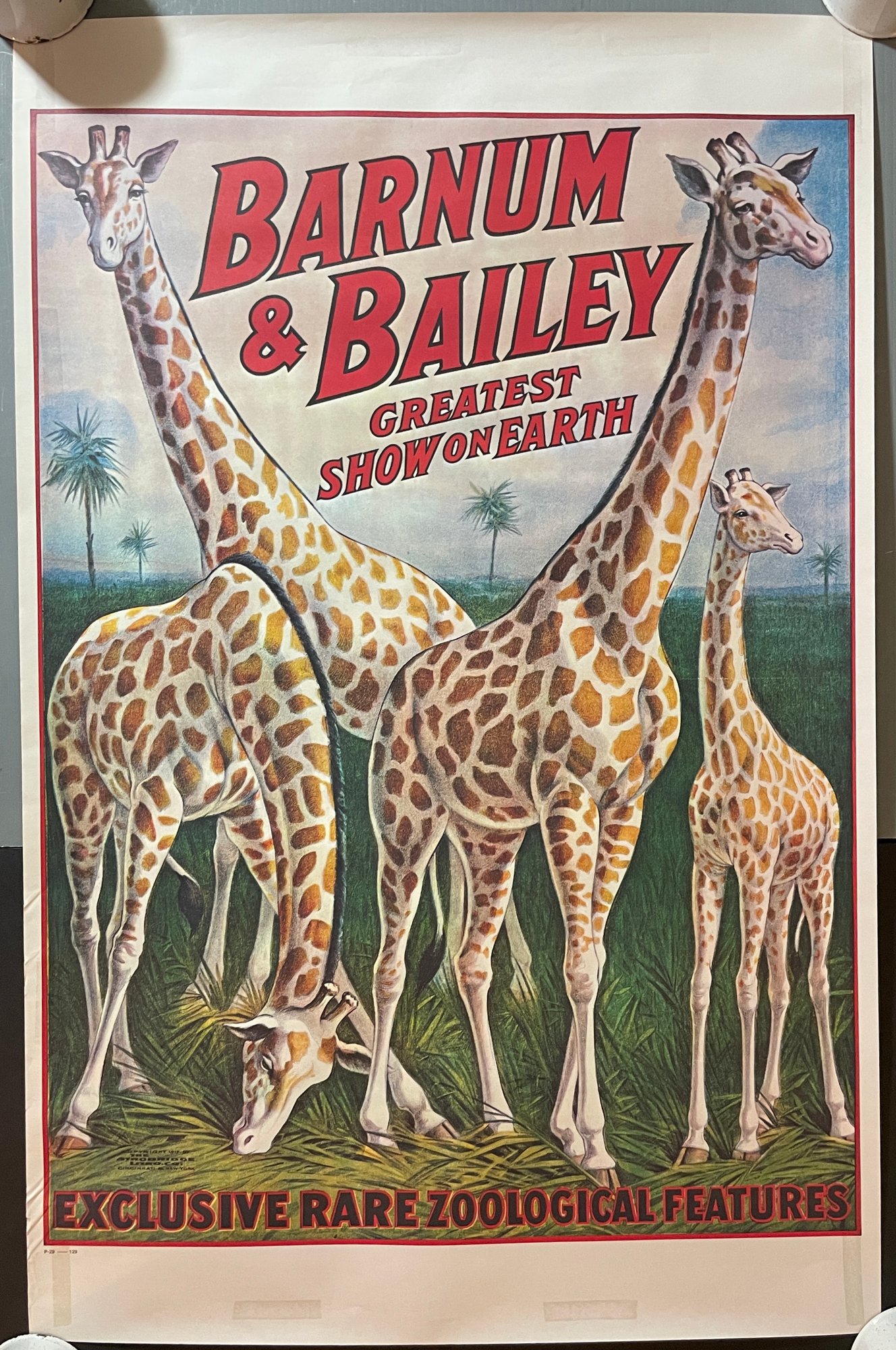 RINGLING BROS BARNUM BAILEY CIRCUS POSTER Giraffe P-29. Approx. 24x36