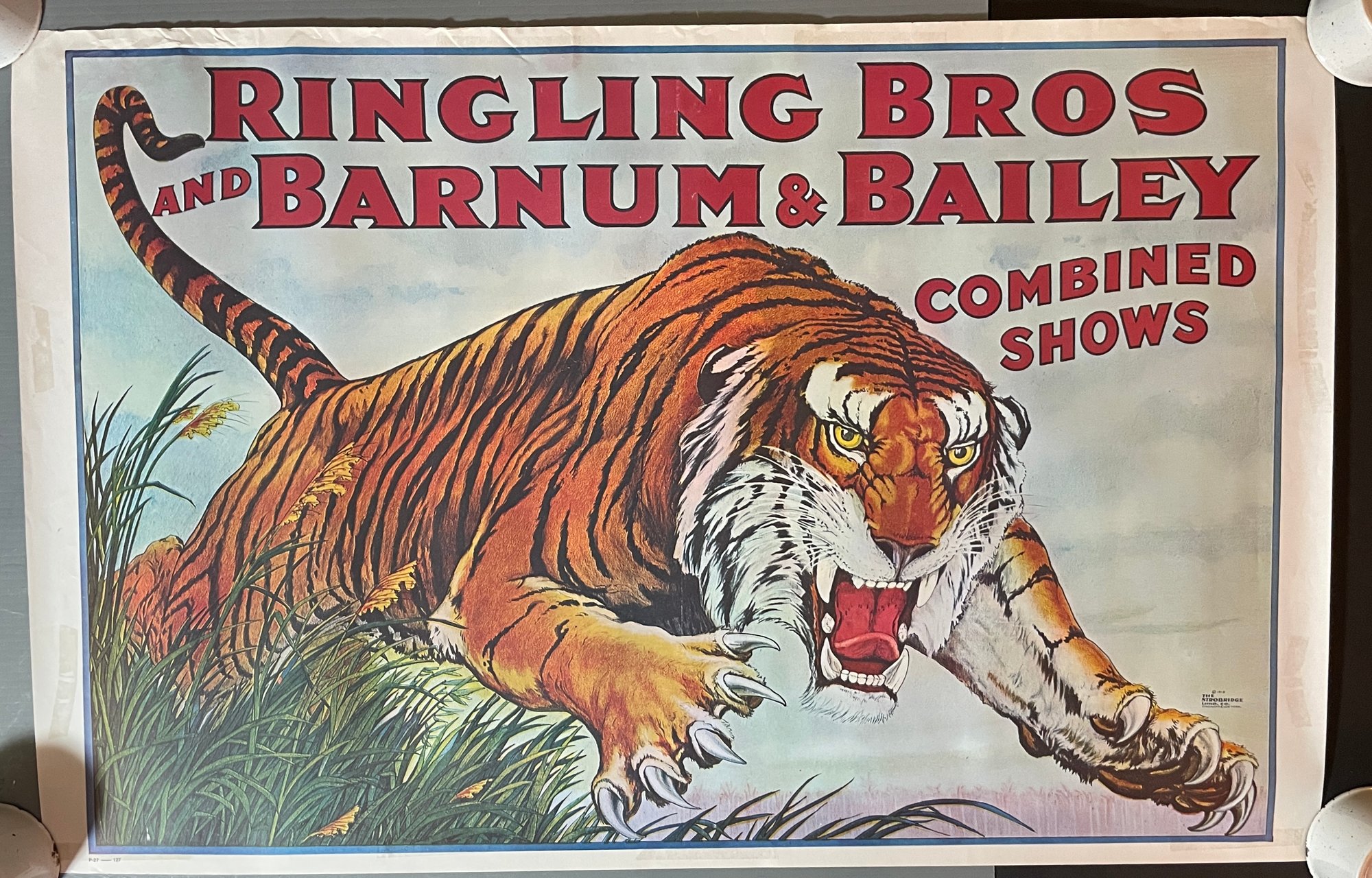 RINGLING BROS BARNUM BAILEY CIRCUS POSTER Tiger P-27. Approx. 24x36