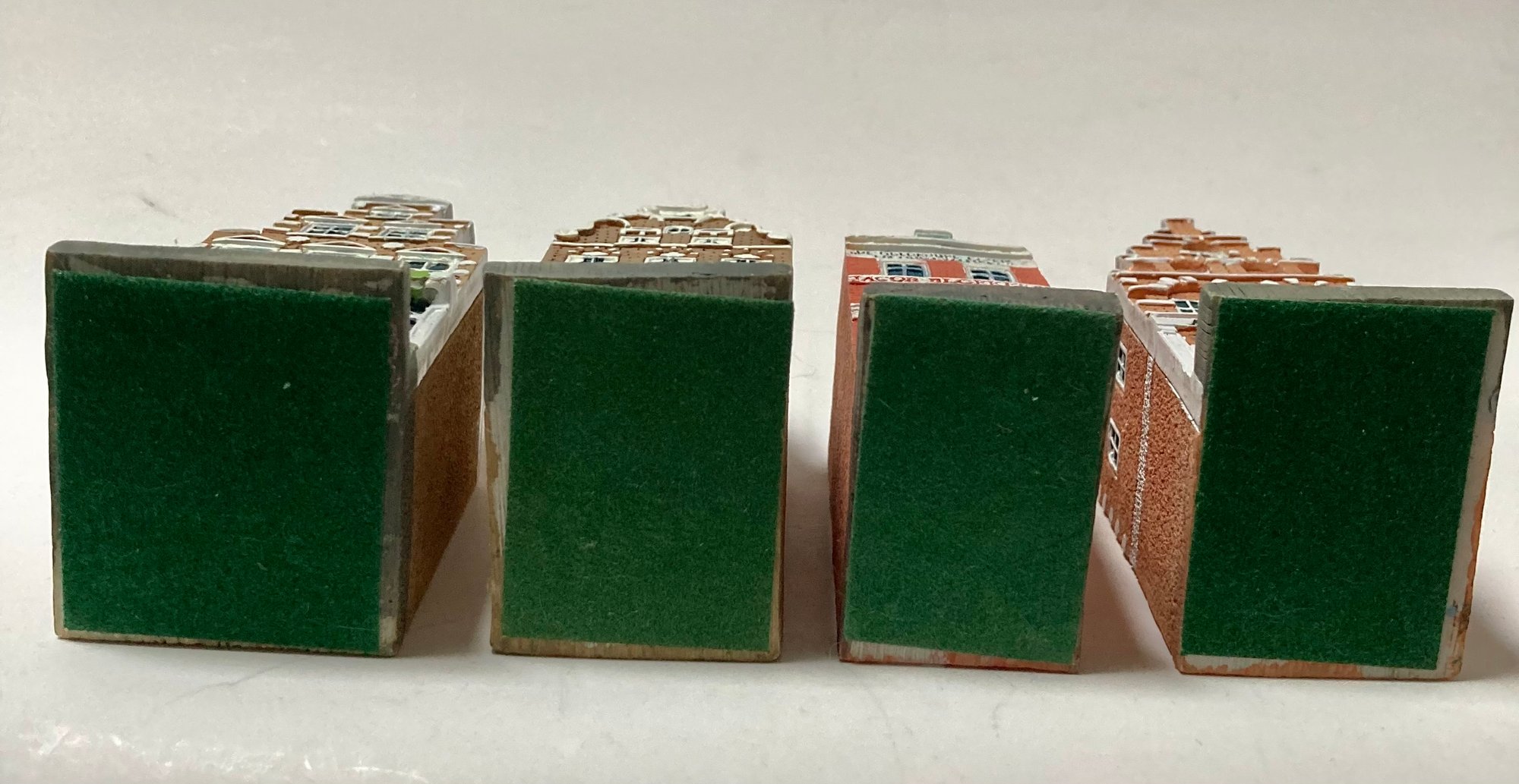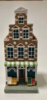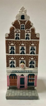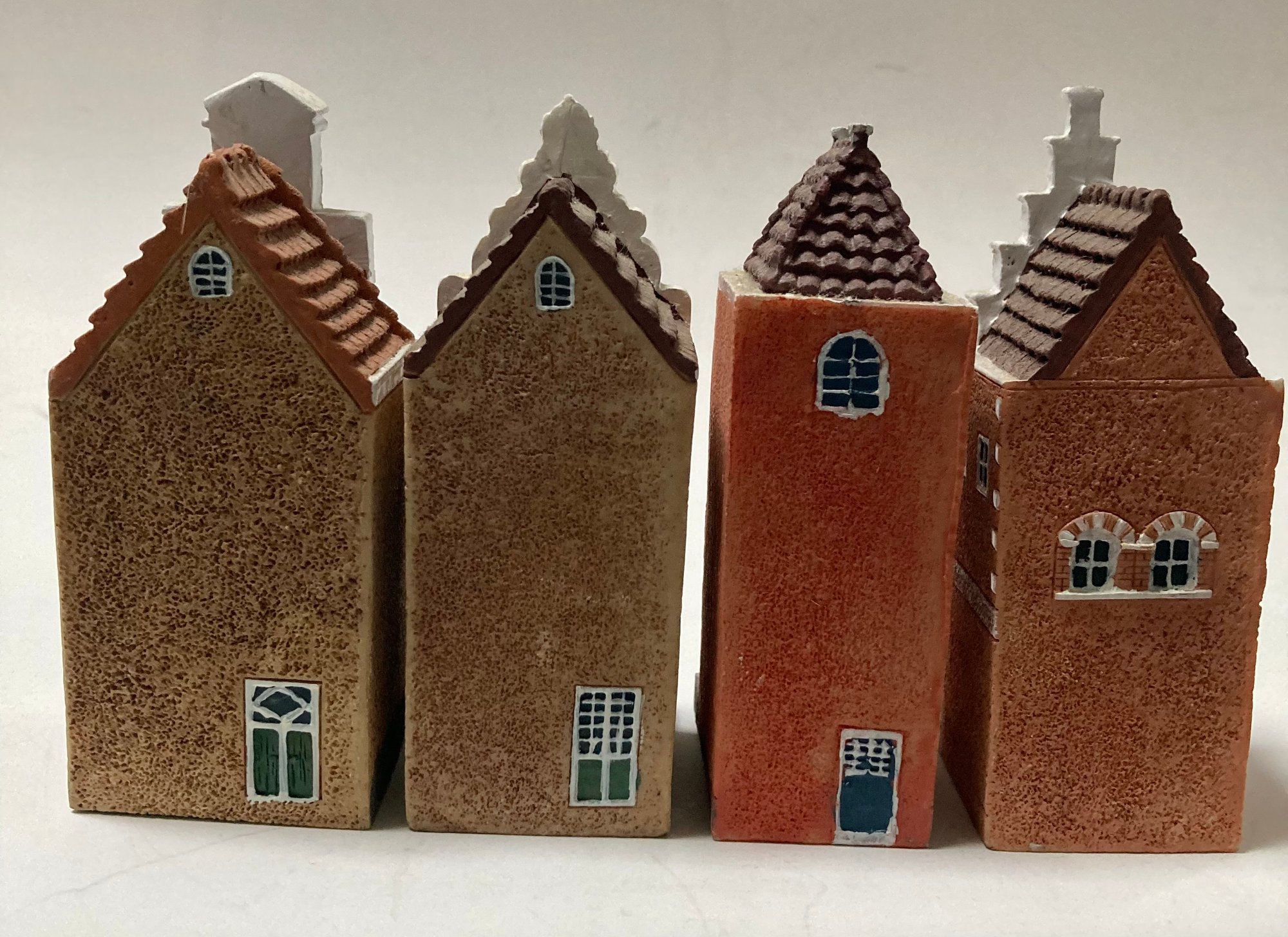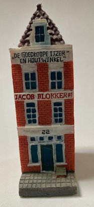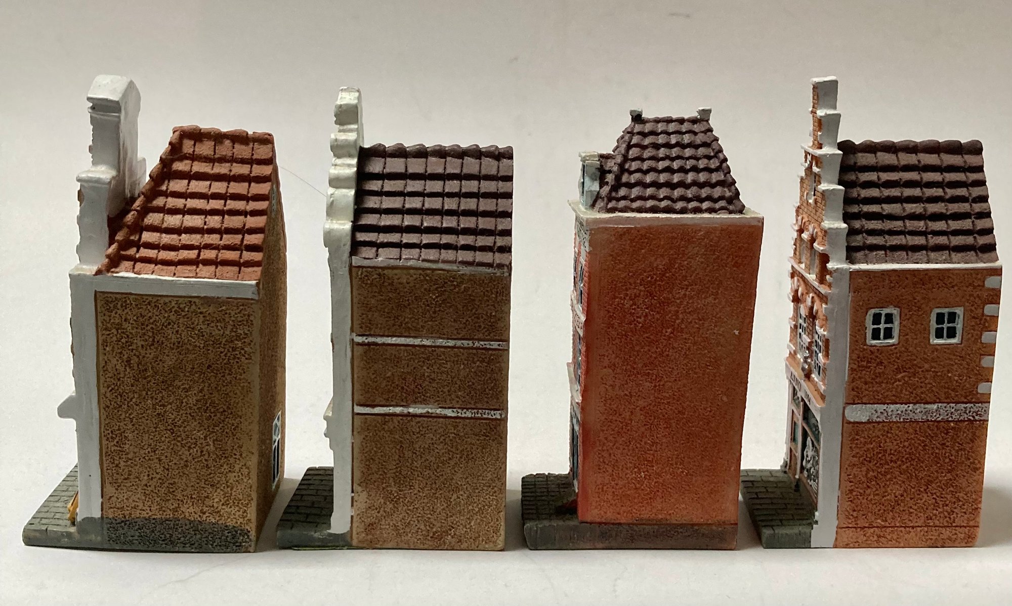 Highly detailed resin Blokker mini canal houses of Amsterdam. They are 4” tall. The four piece set includes the Jacob Blokker house, a drugstore, grocery and silversmith.