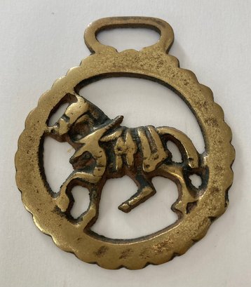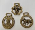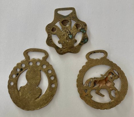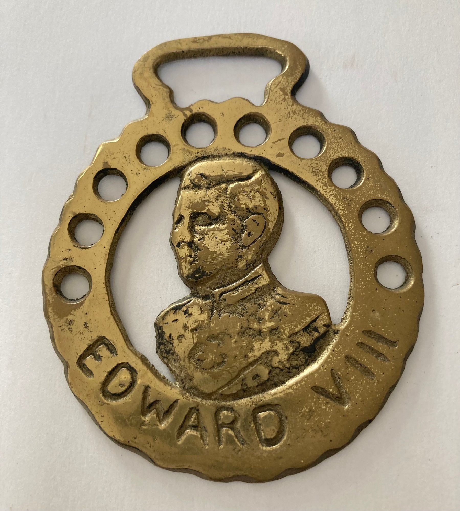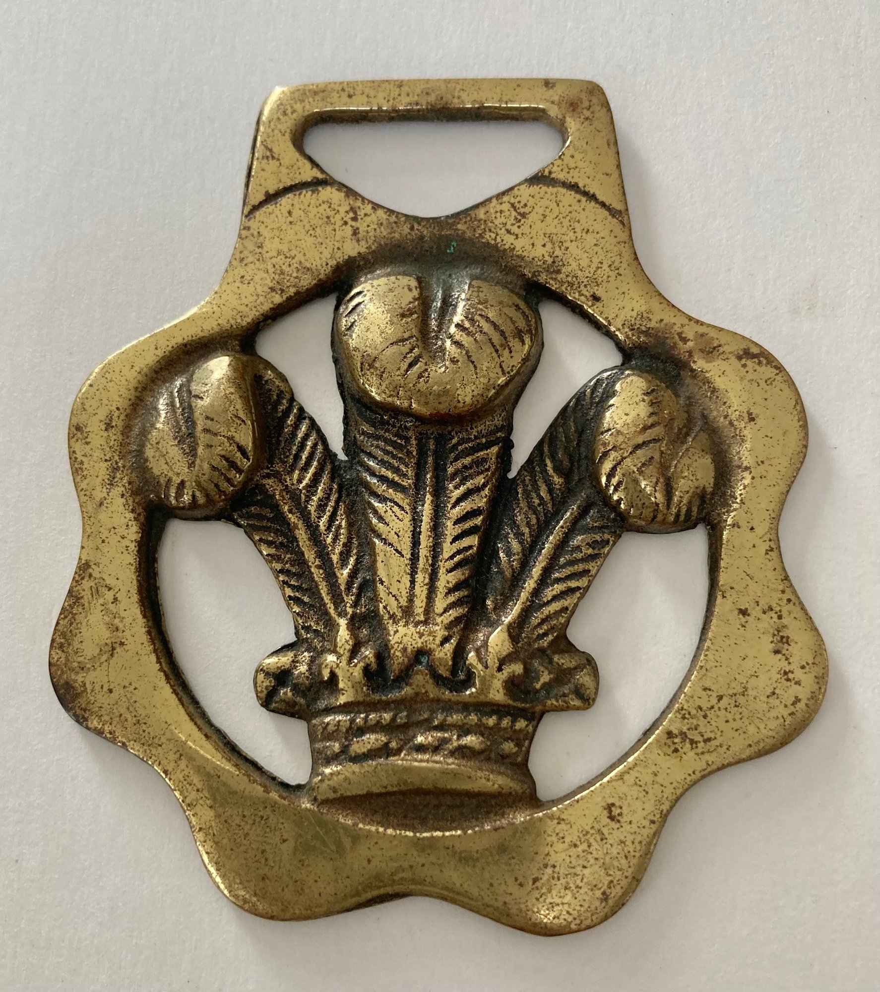 Vintage brass horse medallions from England. Set includes Edward VIII, a horse and three plume feathers.