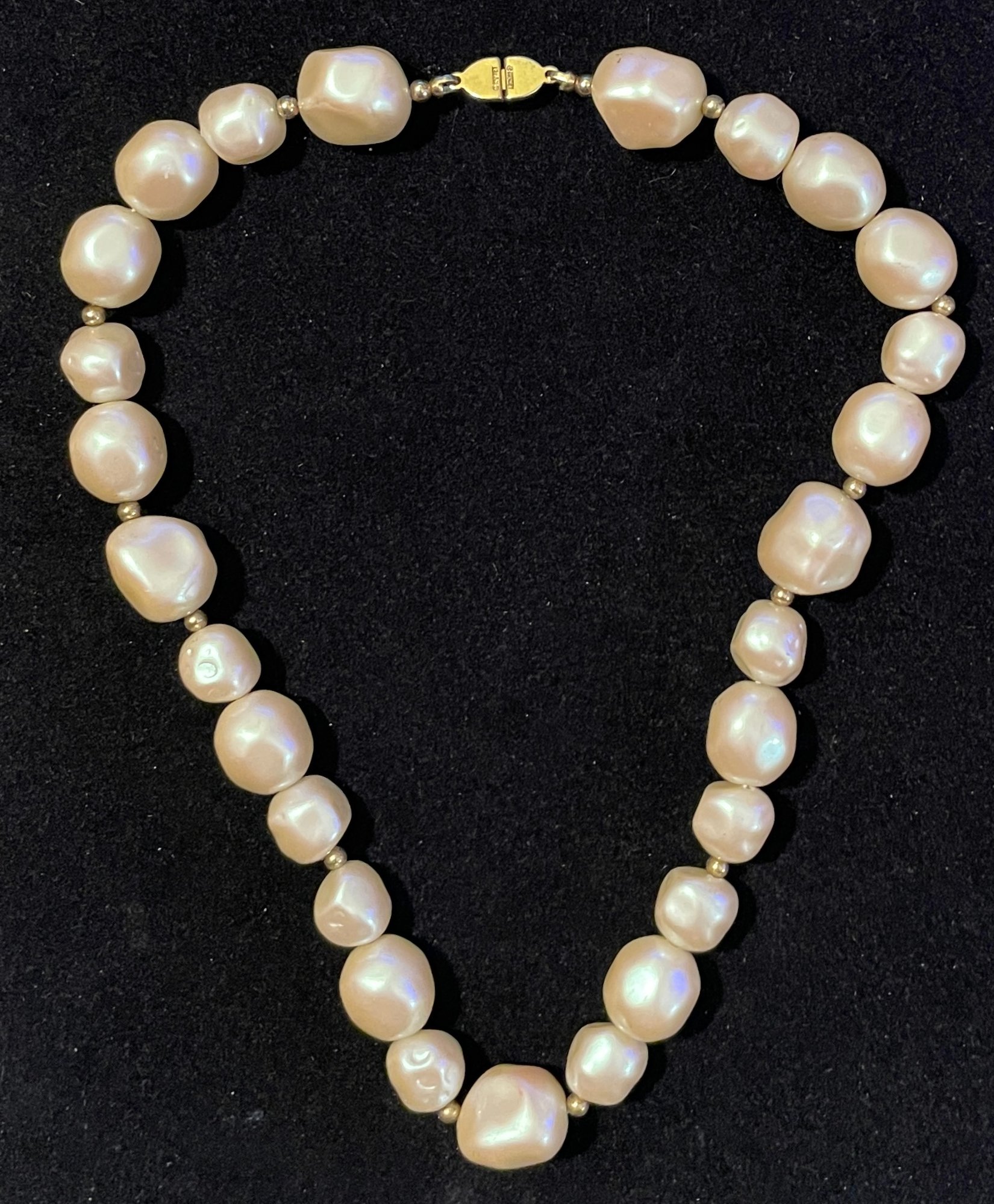 Signed MONET Baroque Lucite White Pearl 60s Couture 15"