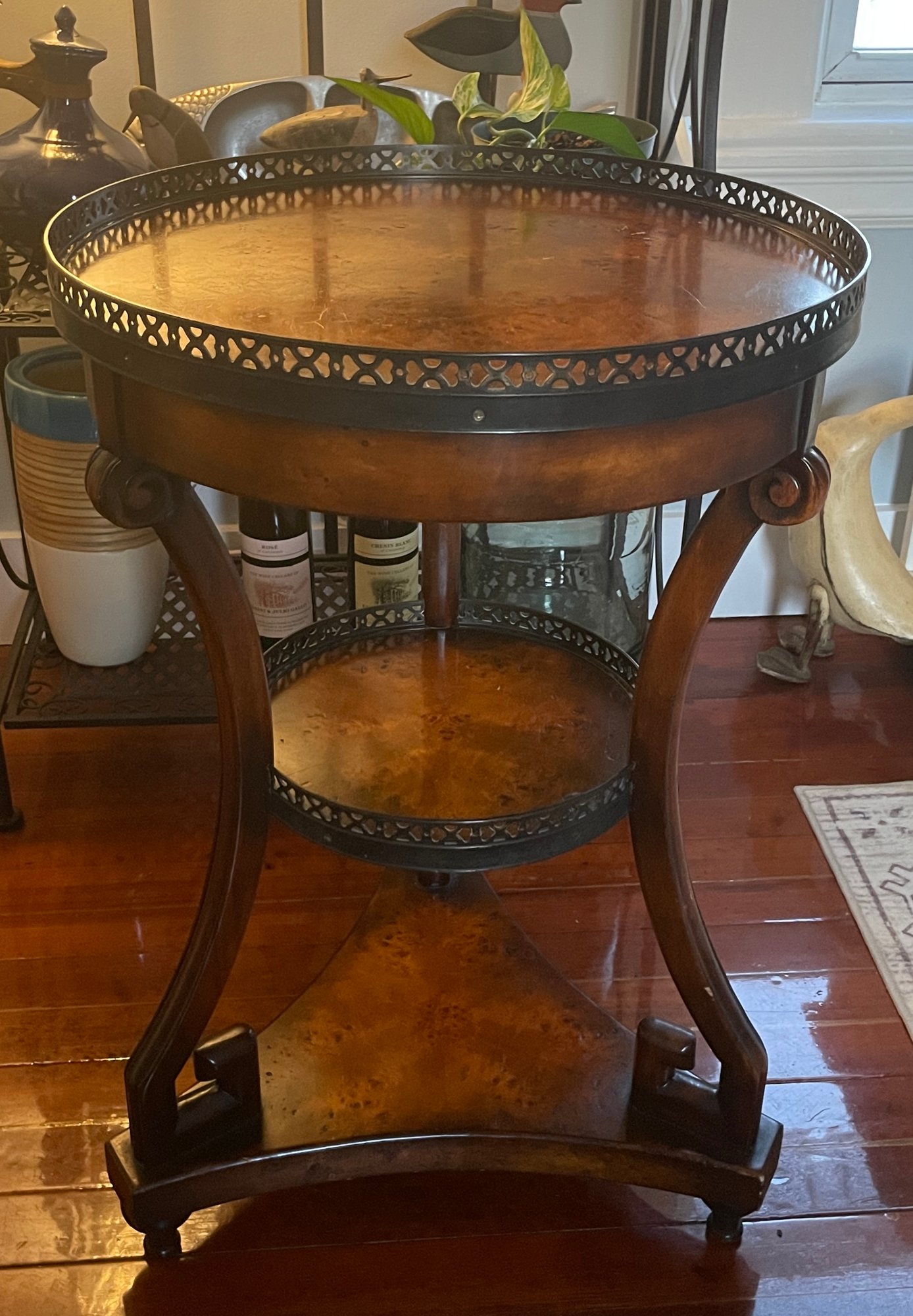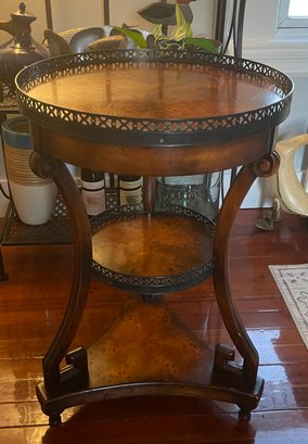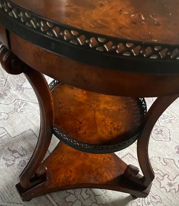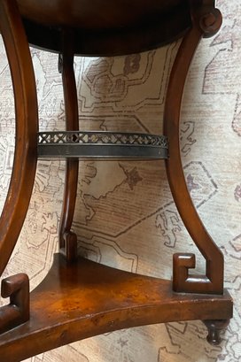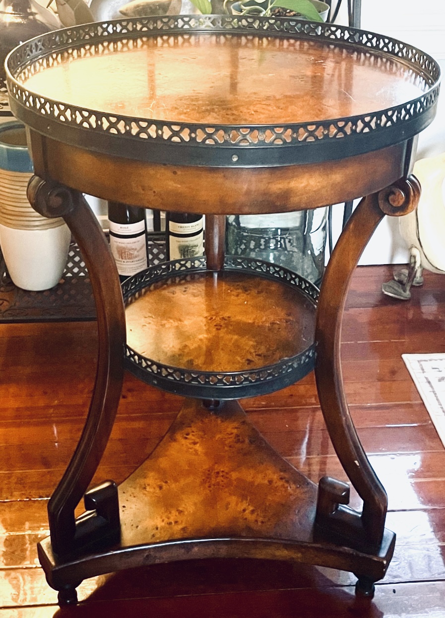 THEODORE ALEXANDER 3-Tiered Burl and Brass Neoclassical Round Side Table