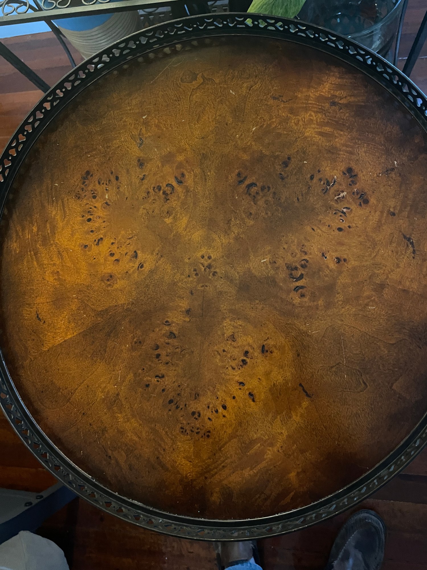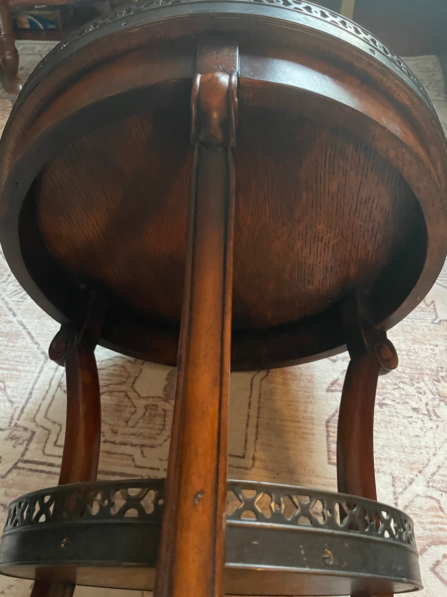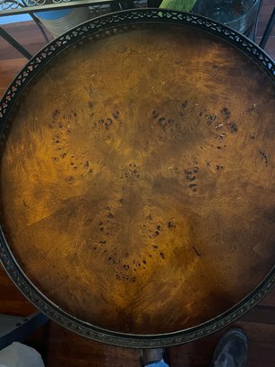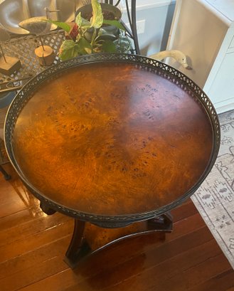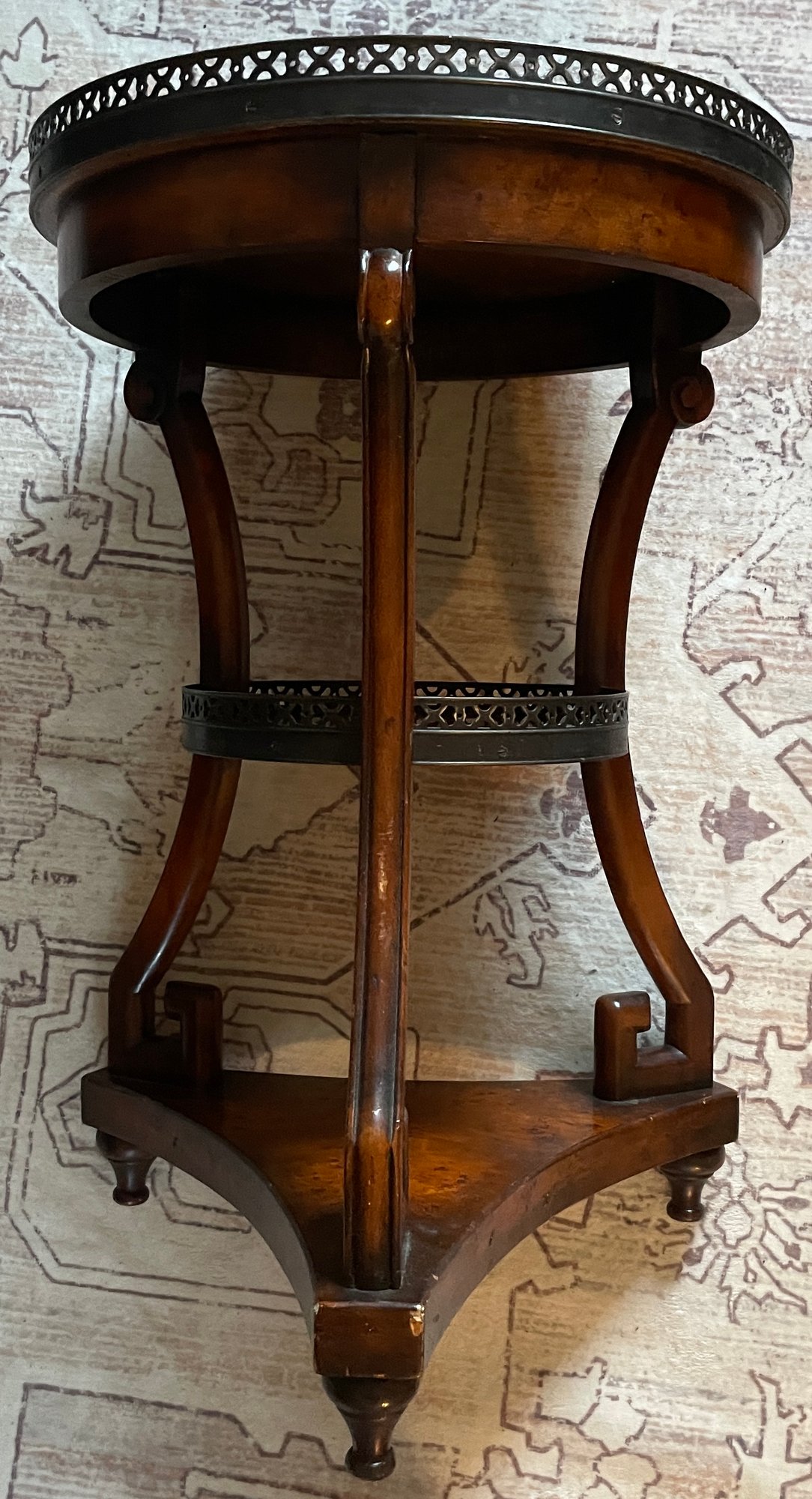 THEODORE ALEXANDER 3-Tiered Burl and Brass Neoclassical Round Side Table