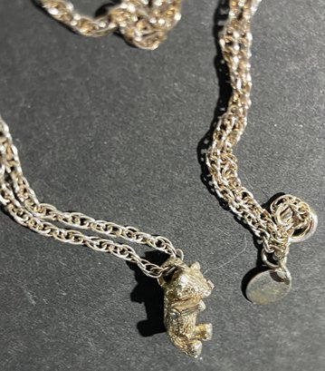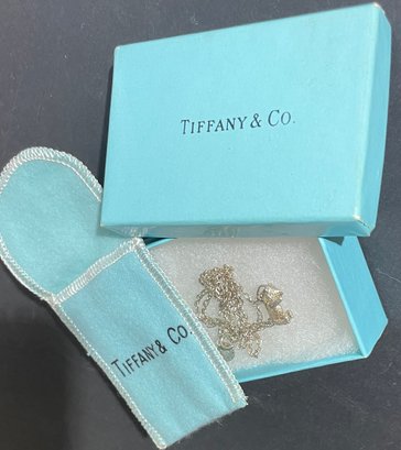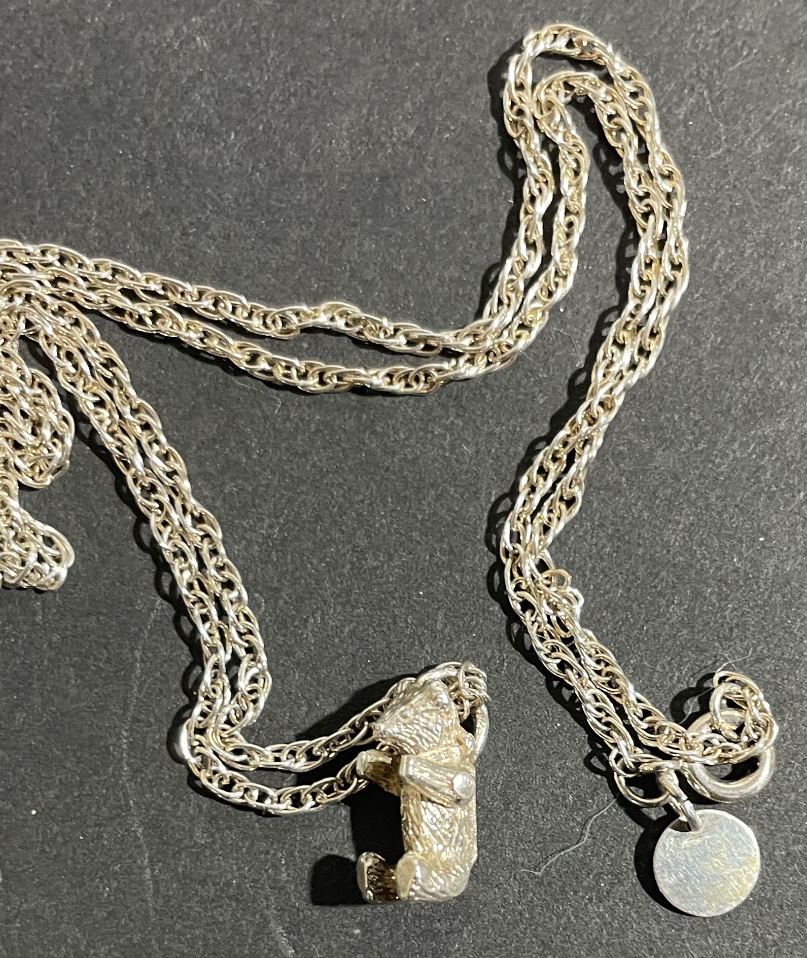 Tiffany & Co Sterling Silver Articulated small TEDDY BEAR Pendant Necklace - 18" Chain - in original box and packaging.