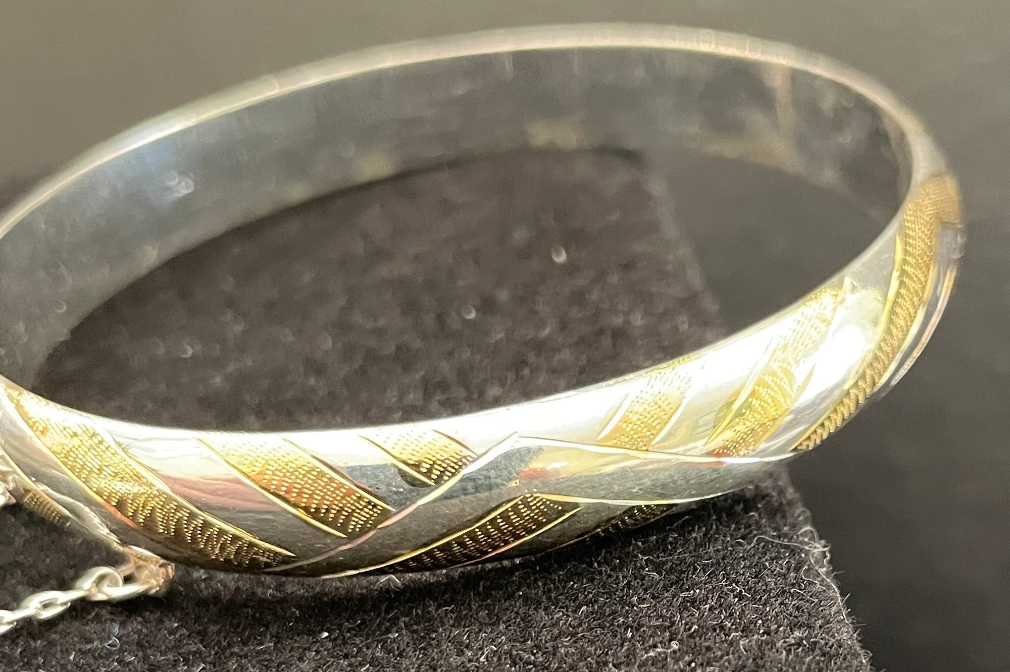 VINTAGE 925 STERLING SILVER BANGLE BRACELET UNIQUE ESTATE FIND With GOLD Highlights
