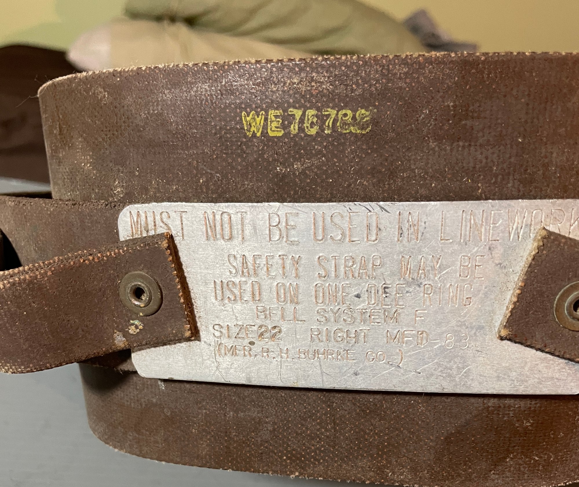 Vintage Bell System Telephone Company Safety Belt by RH Buhrke Co size 22