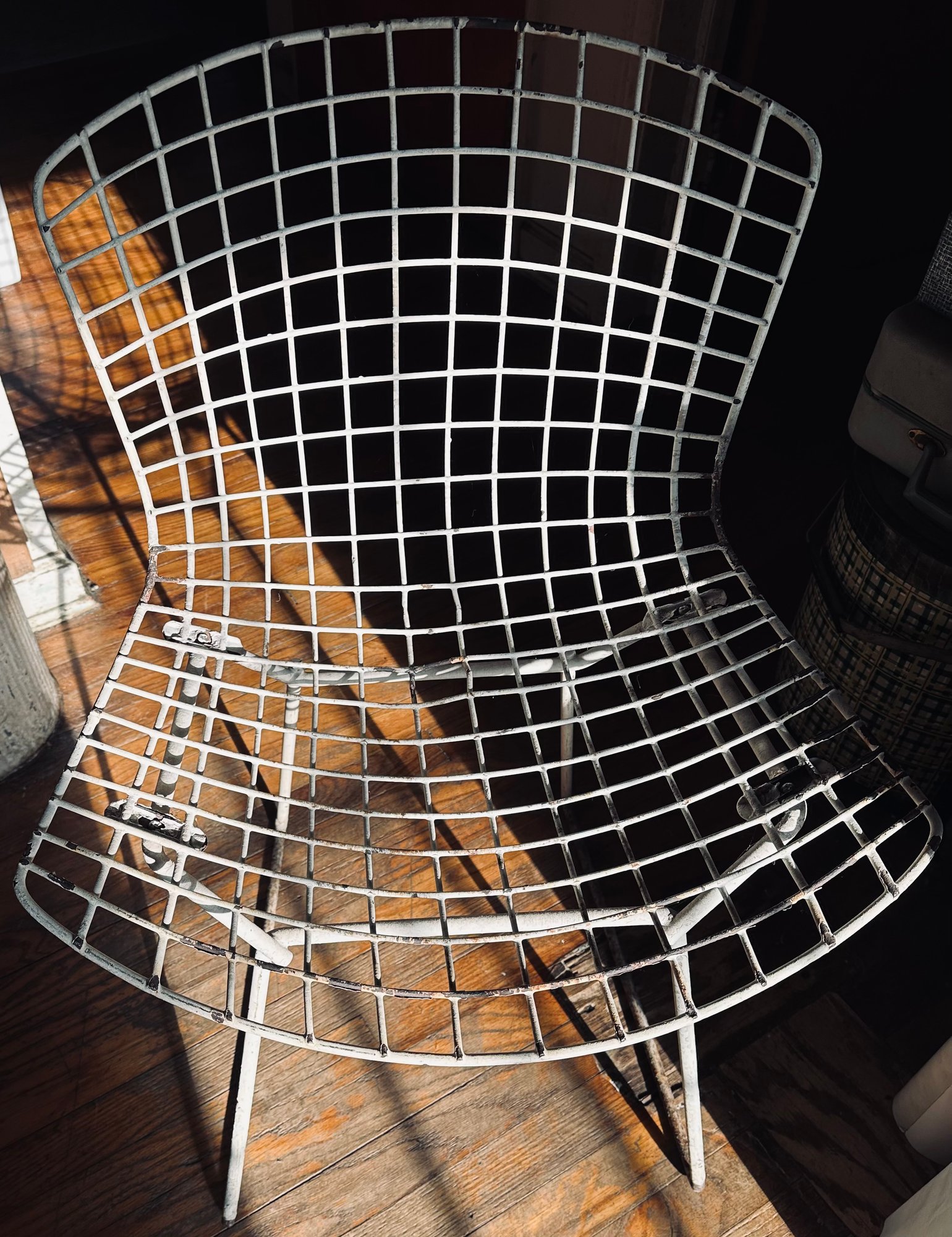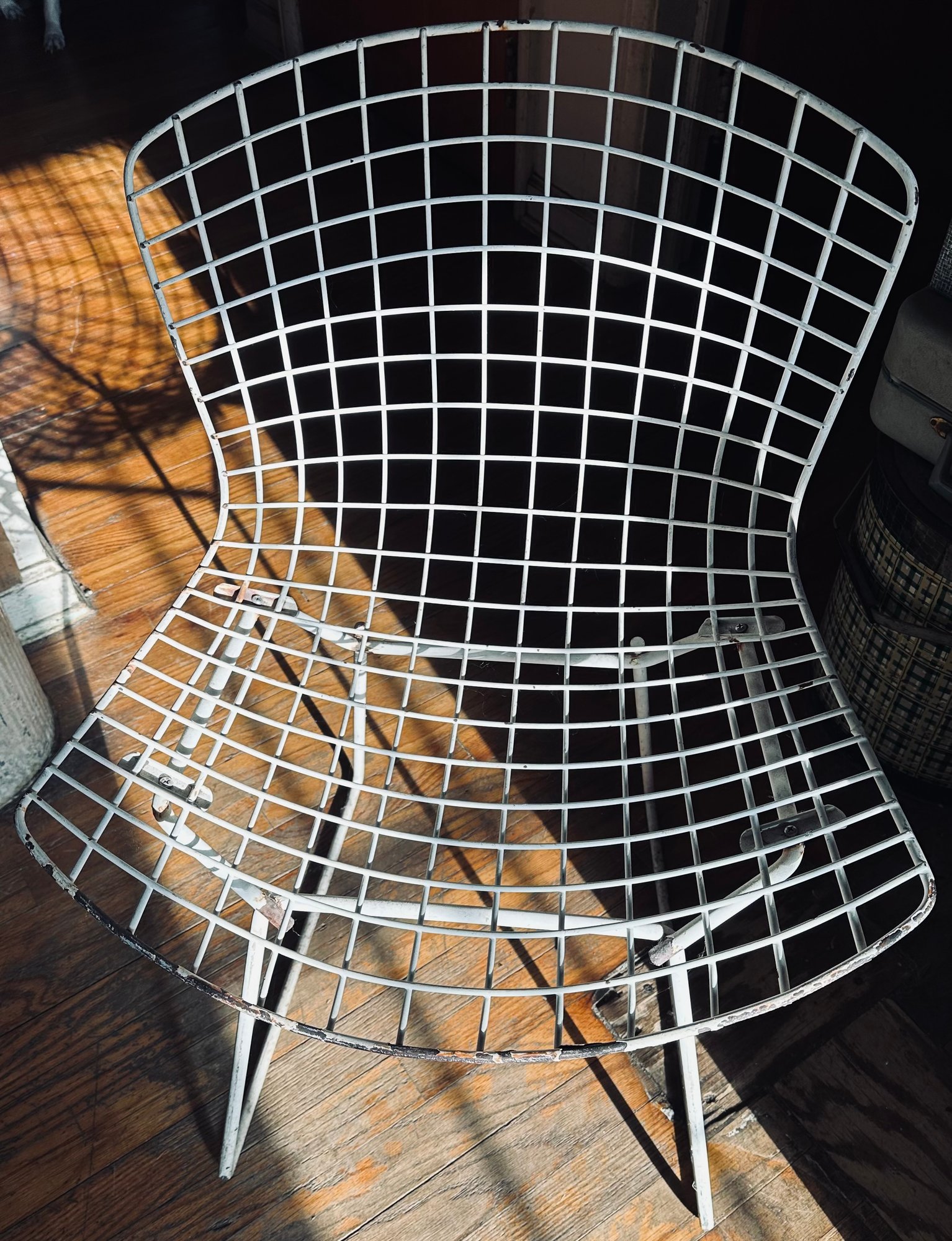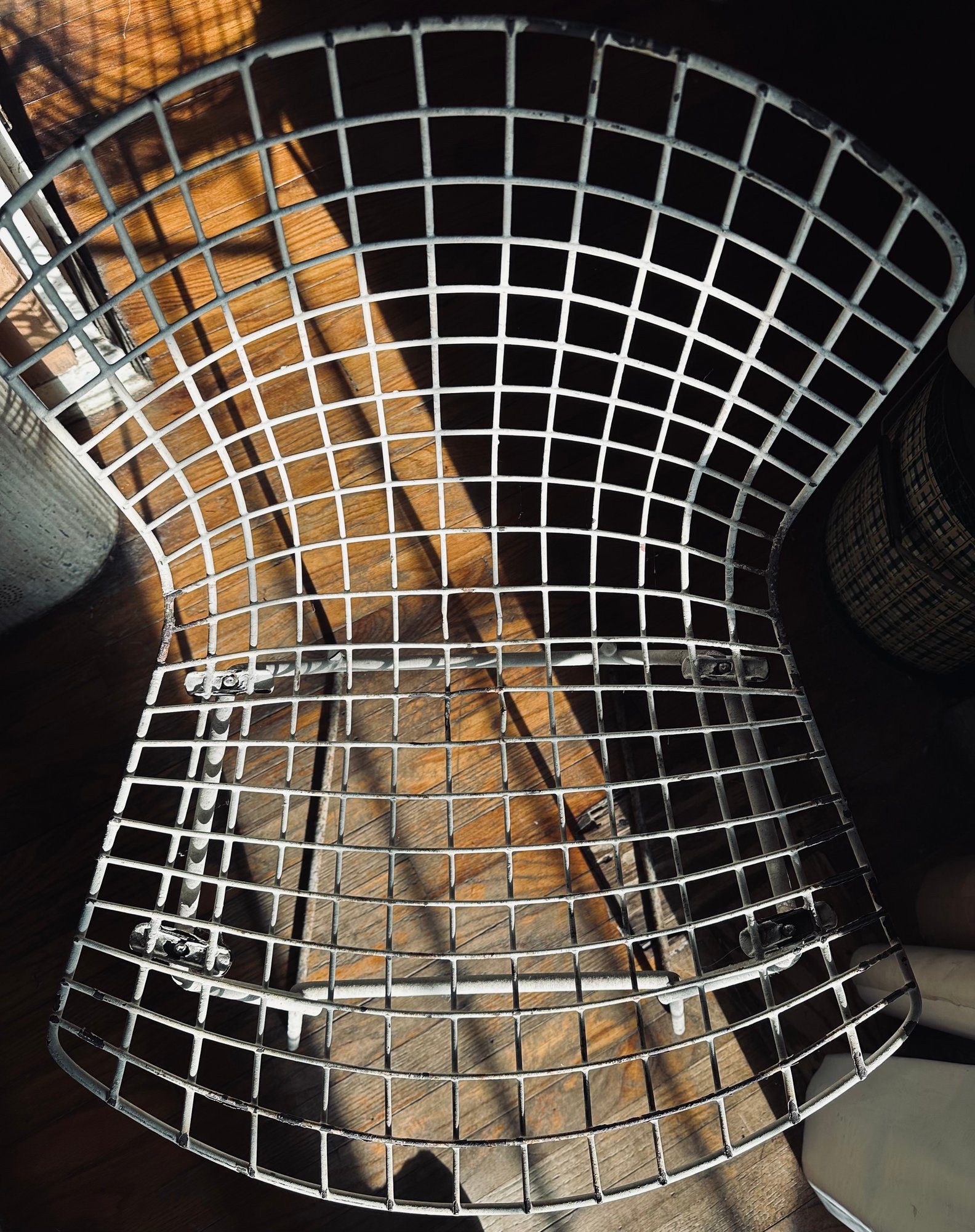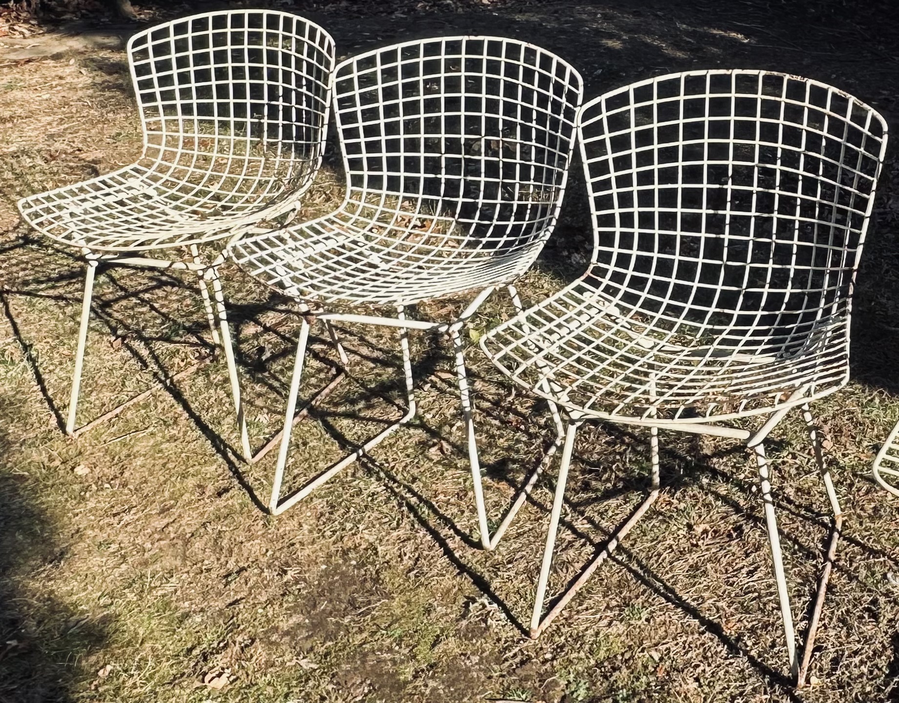 Vintage Bertoia White Wire Side chairs by KNOLL. Iconic mid-century modern pieces perfect for collectors or design enthusiasts. Good vintage condition.
