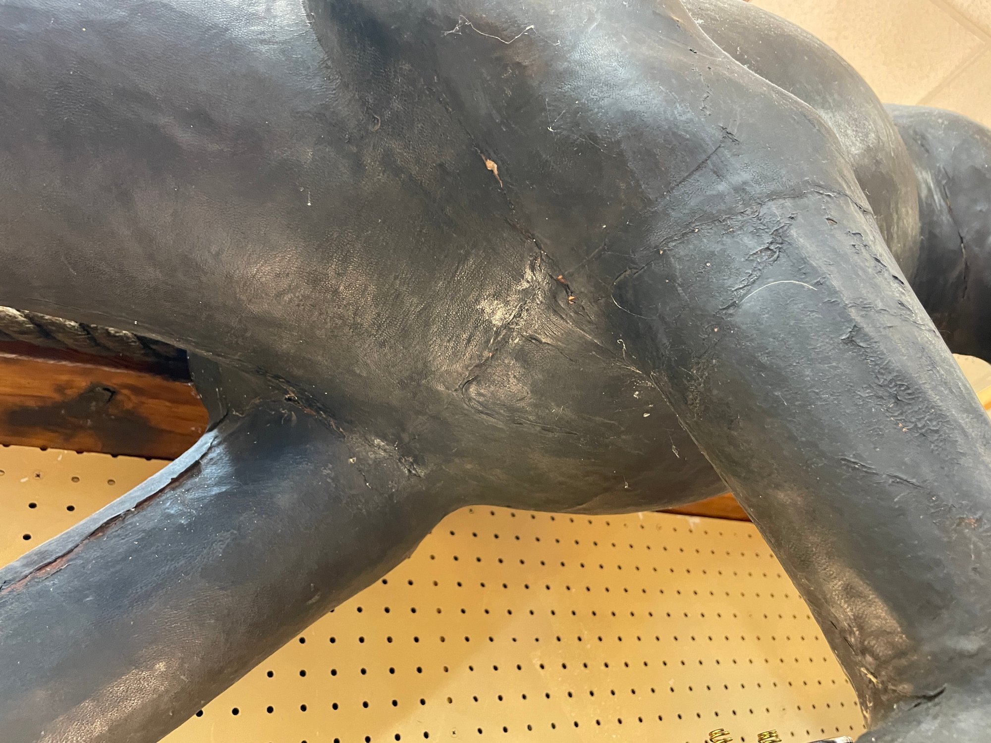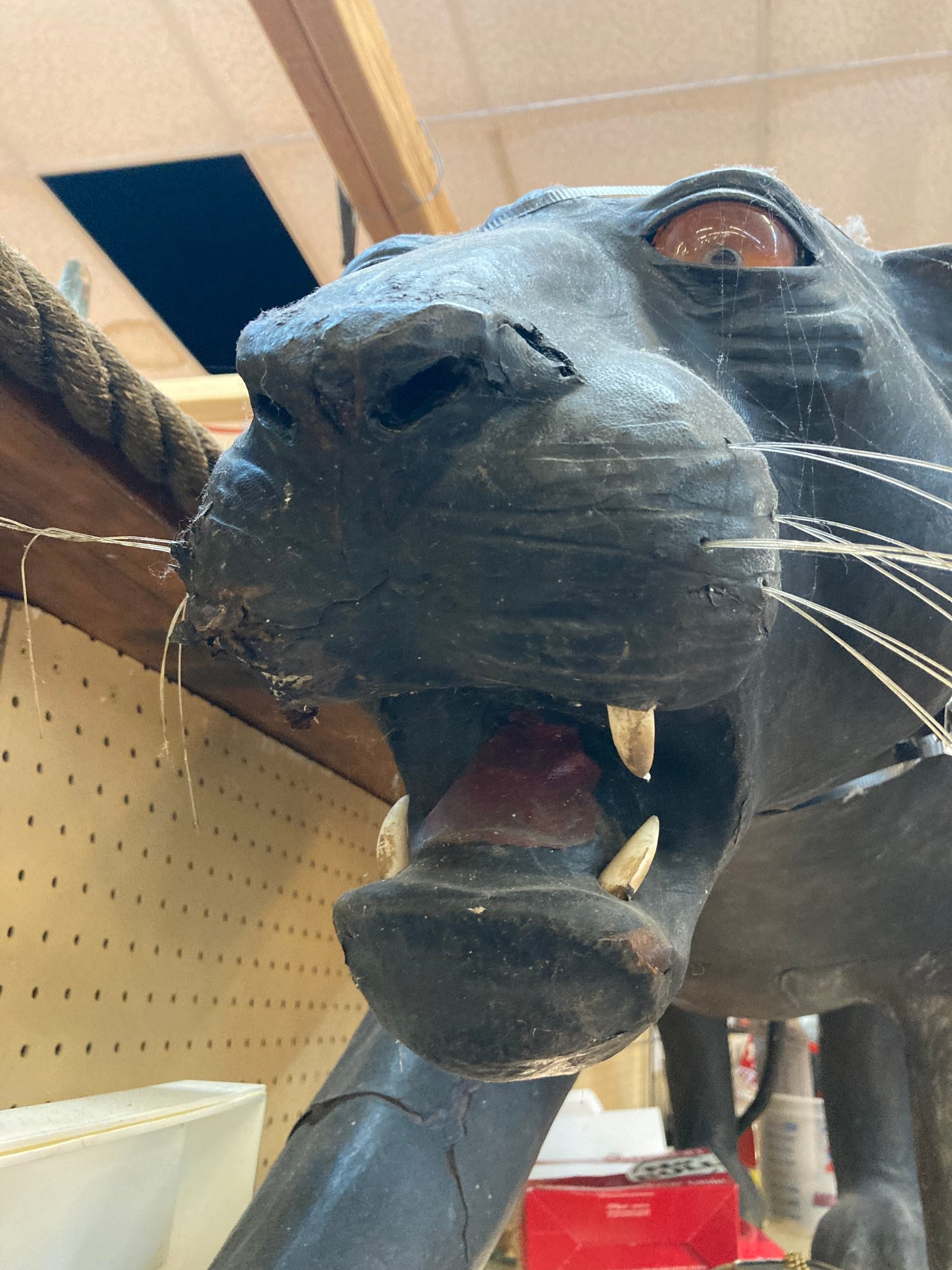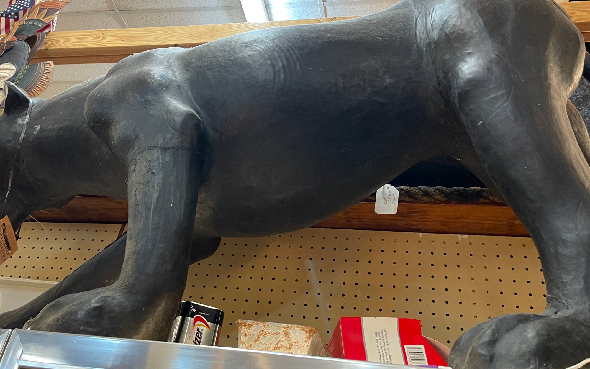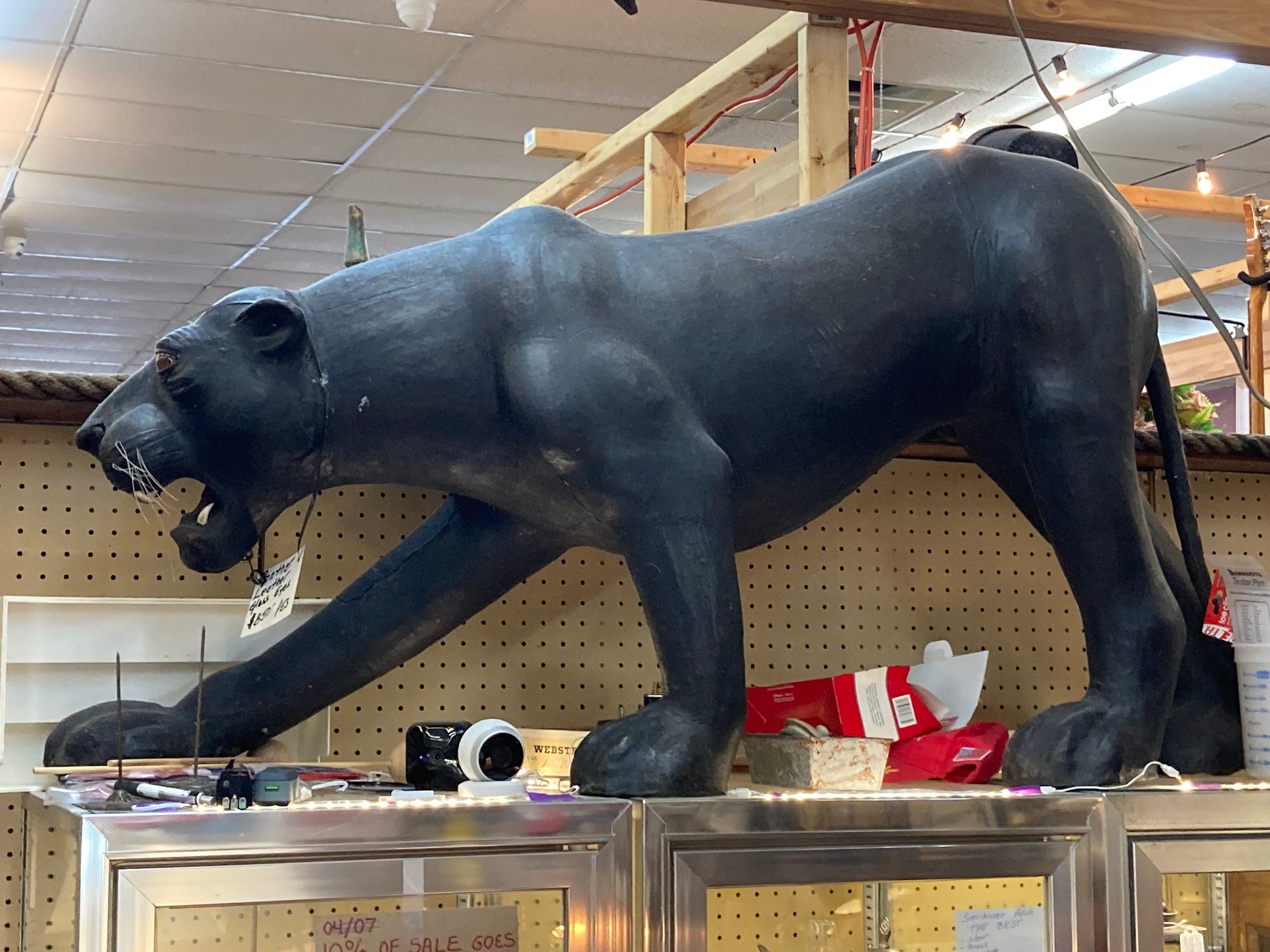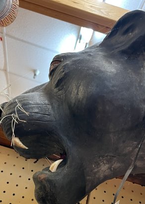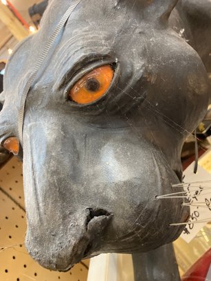 Black Leather Panther is an impressive 60” long, 30” tall and 30” wide. There are some condition issues mostly consistent with age, however it is an overall beautiful piece that will add to your home or office environment.