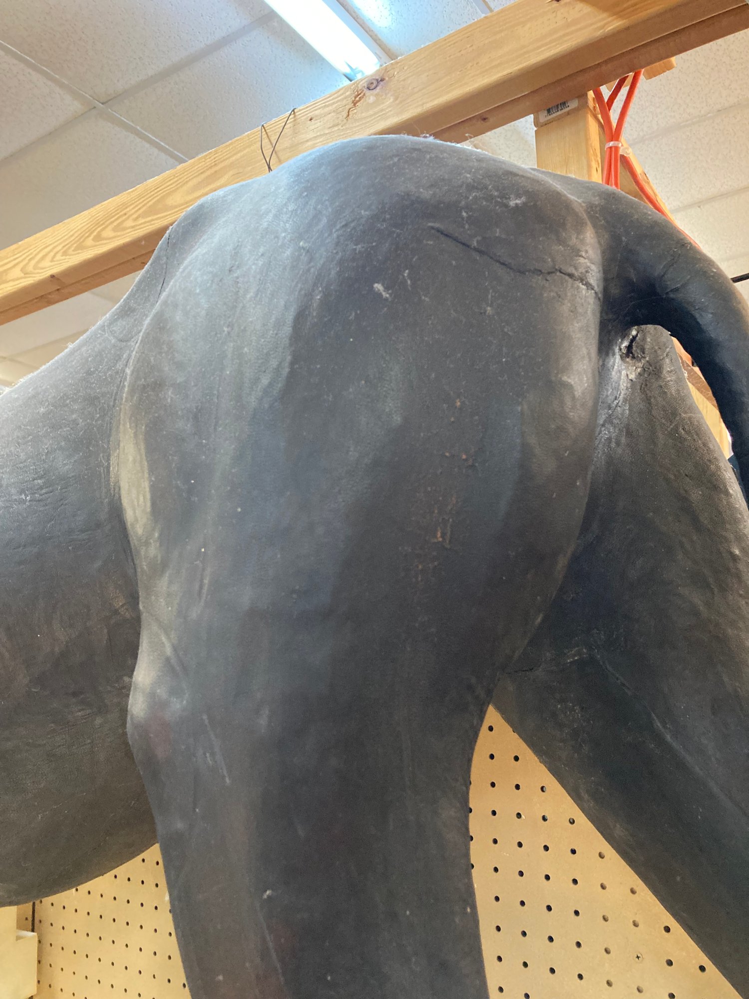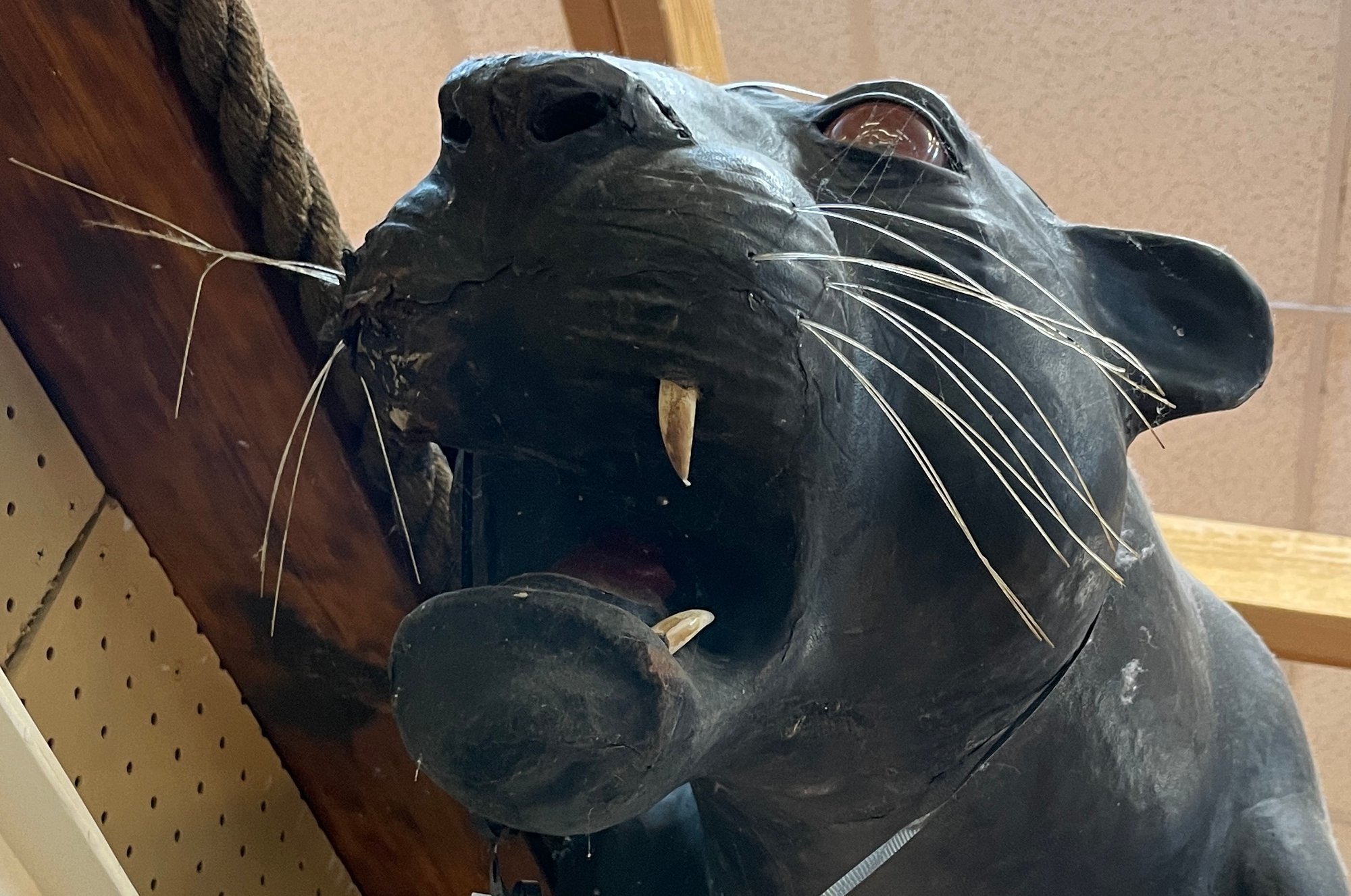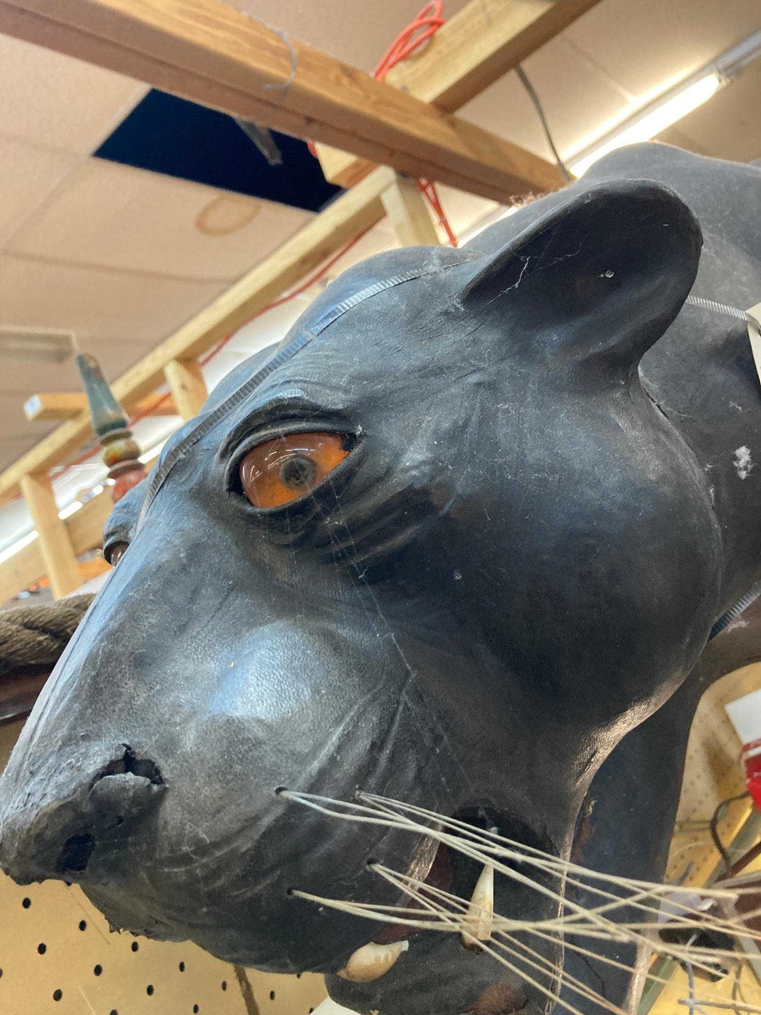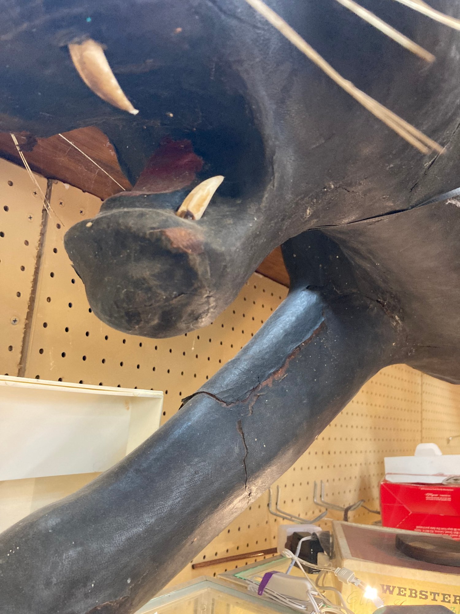 Black Leather Panther is an impressive 60” long, 30” tall and 30” wide. There are some condition issues mostly consistent with age, however it is an overall beautiful piece that will add to your home or office environment.