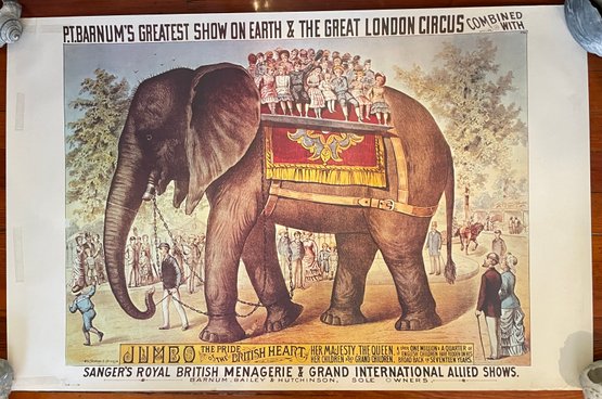 Vintage P.T. Barnum - Jumbo the Elephant - Circus Poster - 36" x 23.5" P-28 128. As found, please use pictures as our best description.