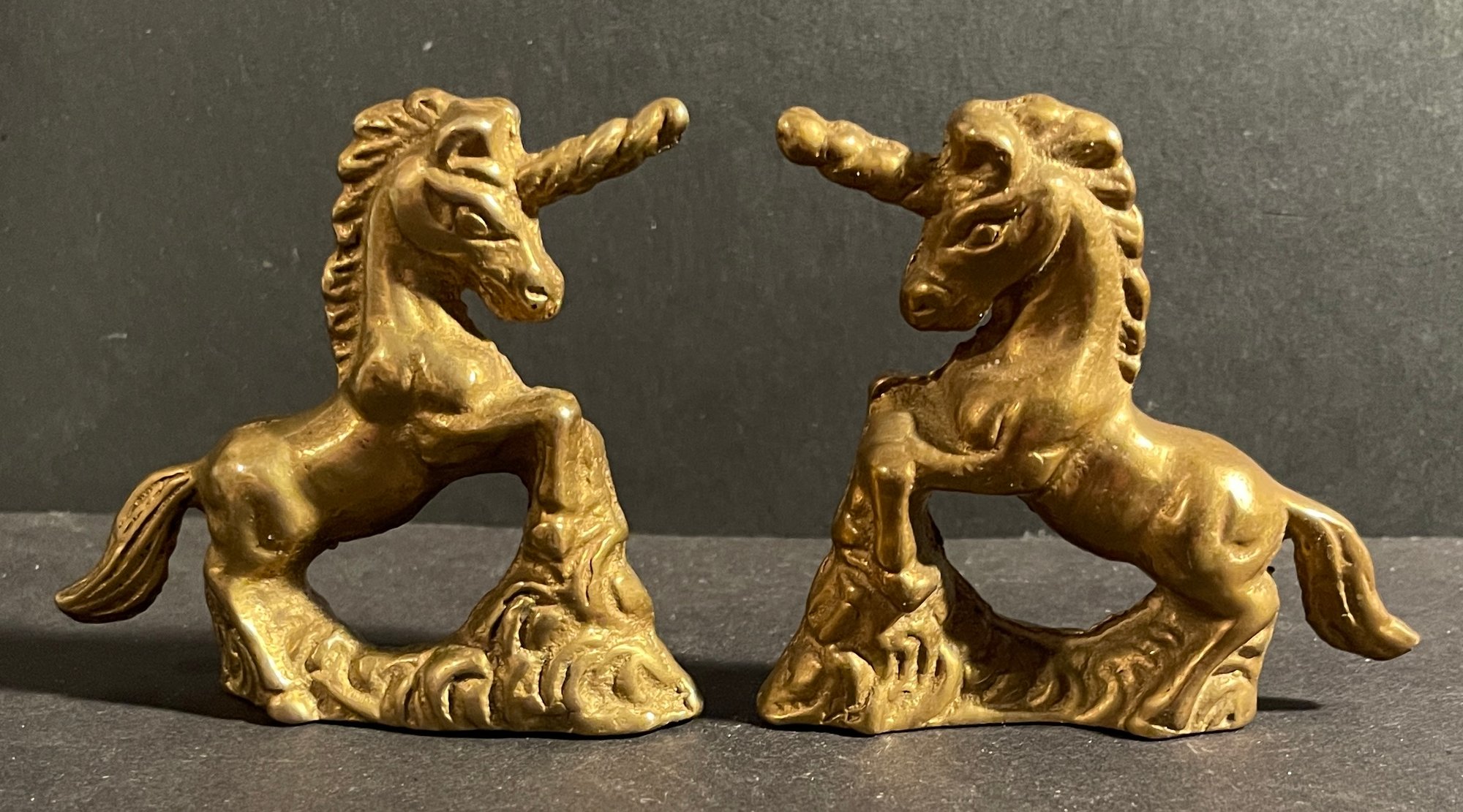 Vintage Pair of Brass Unicorns - 3" x 2 .5" Each