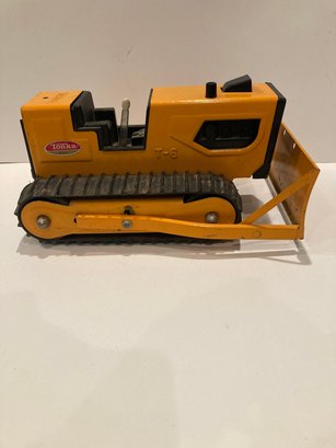 Vintage Tonka T-6 bulldozer from the 1970’s. Manufactured of pressed steel and rubber. Measures 9” in length. Bulldozer in in very good condition.