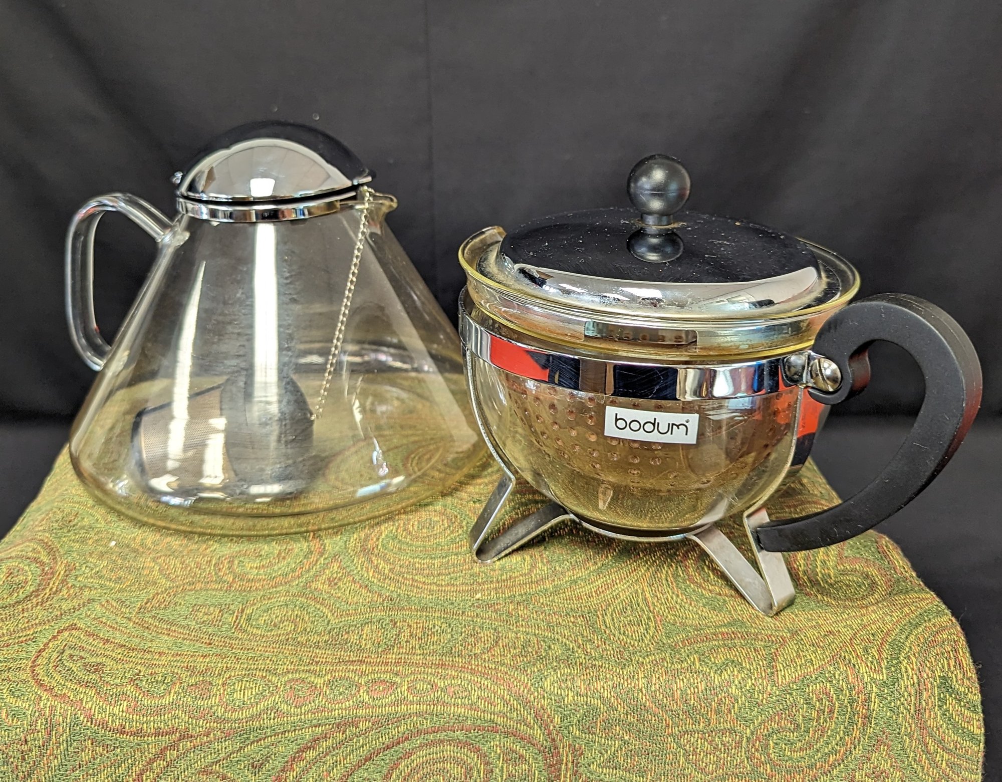2 glass coffee pots. Some stains and ware on each pot see pictures. All pieces pictured