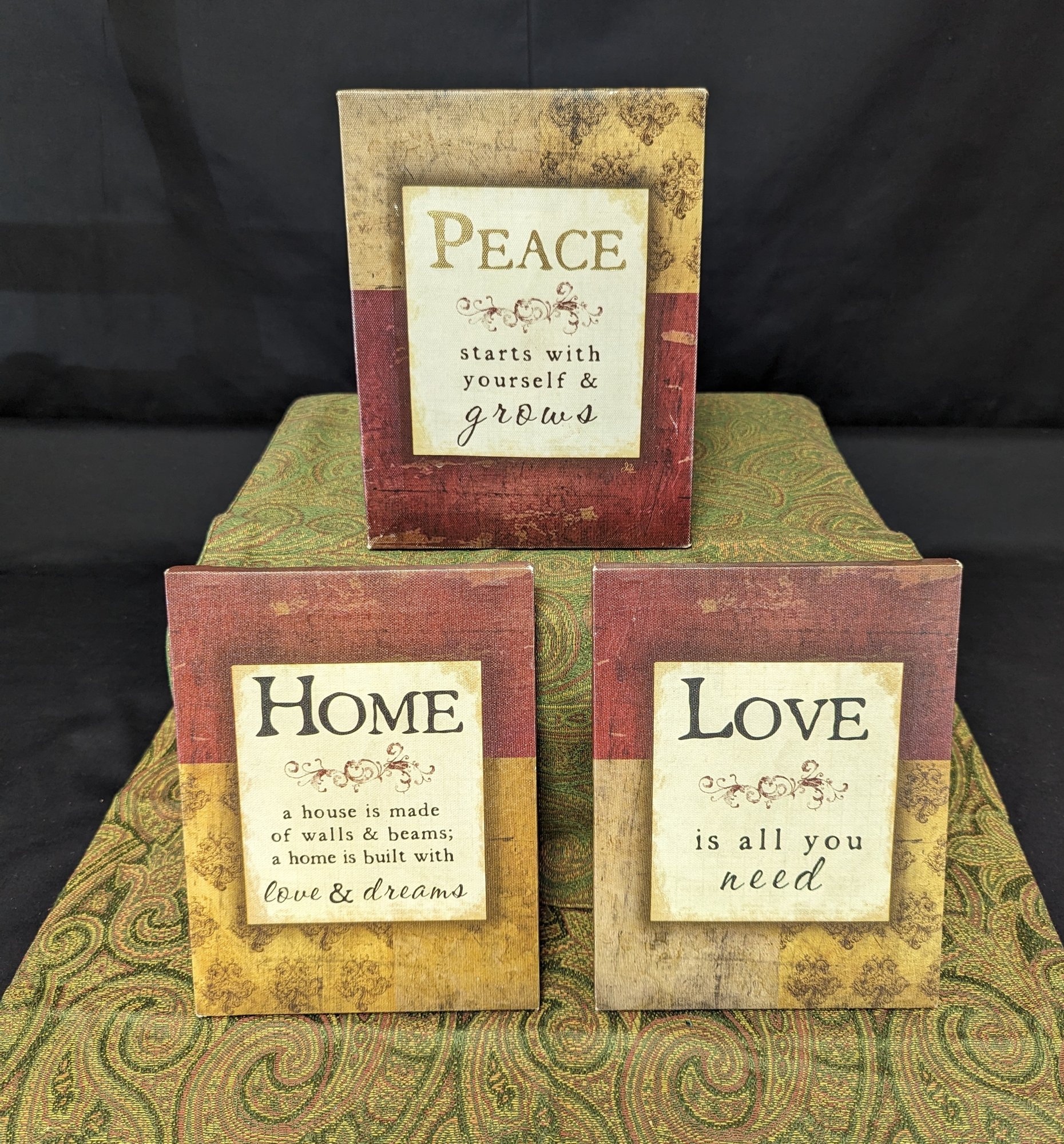 3 canvas wall hanging, peace love and home