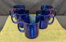 Set of five royal blue glass mugs made in France. great condition
