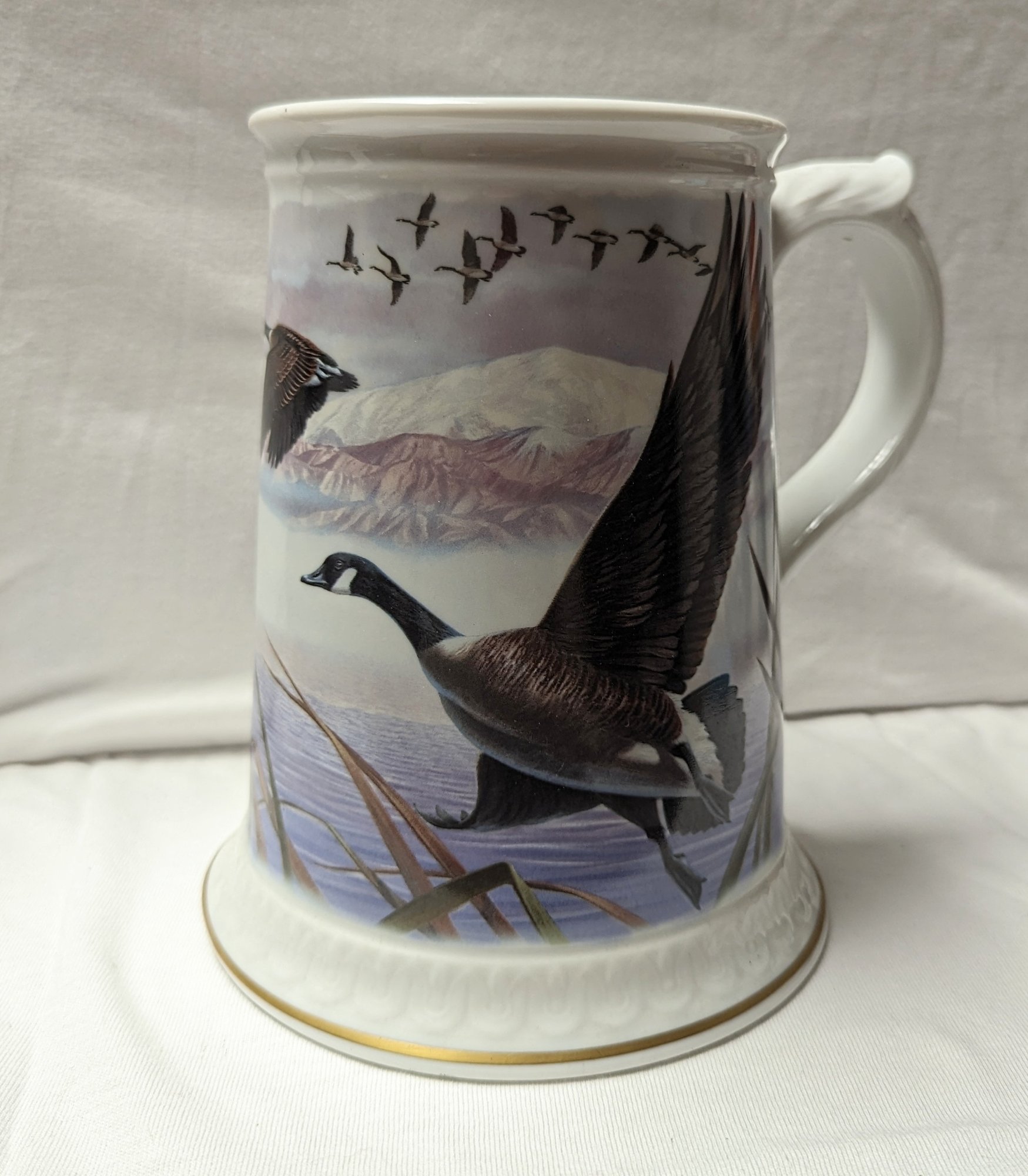 Tall mug , pristine condition, wrap around goose design. Franklin porcelain. 'The Canada Goose' limited edition mug
