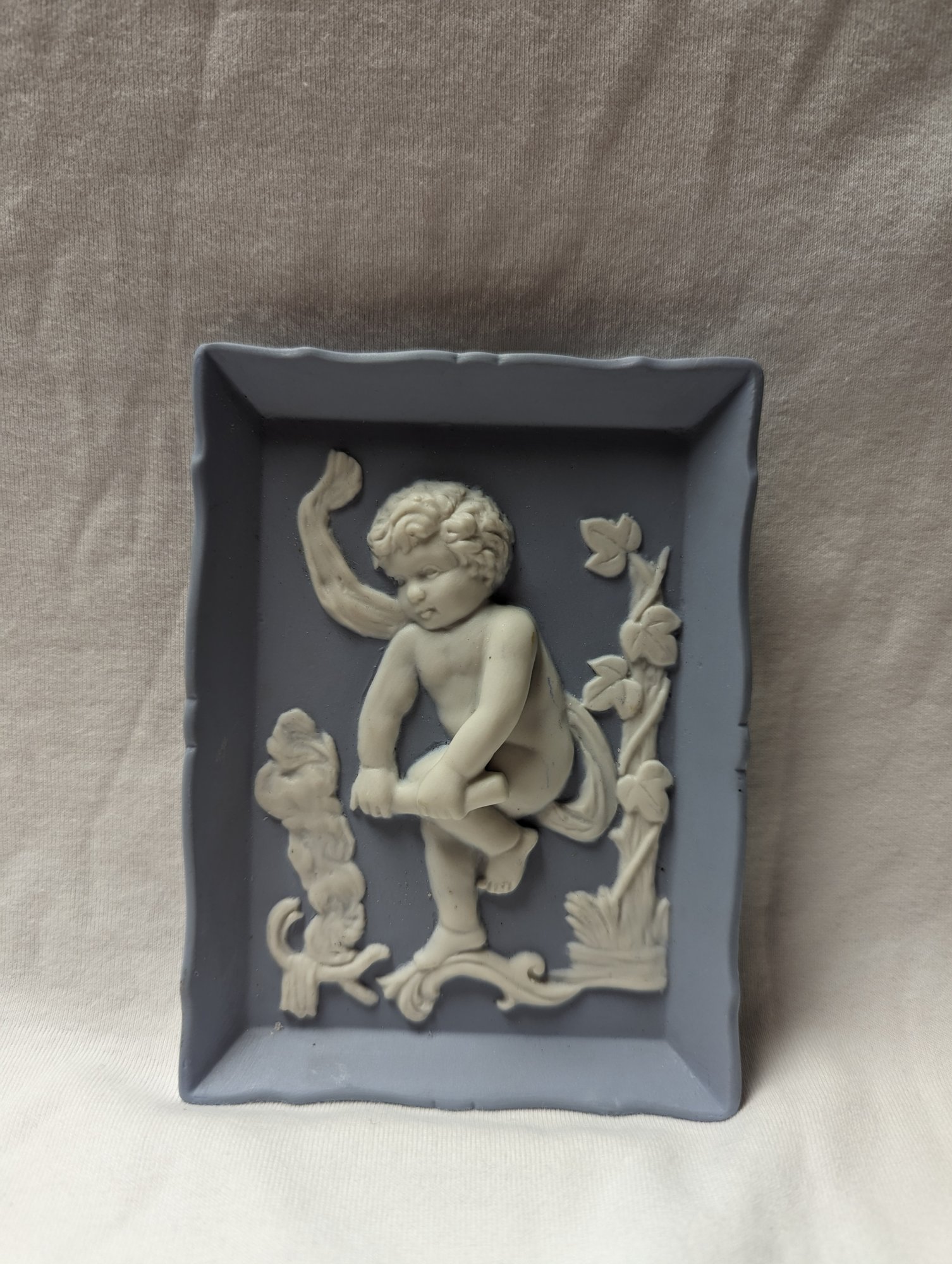 Powder blue ceramic cherub wall decoration. 'ANDREA' hand painted, made in Japan. Well taken care of- in good condition, no chips.