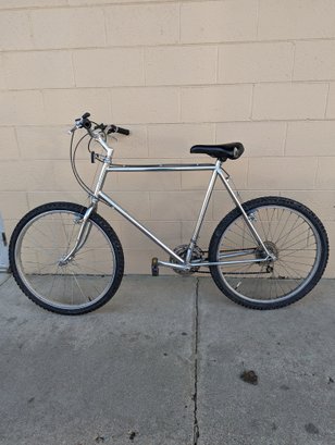 Classic 1986 diamondback ascent bicycle with chrome frame. Some ware - see pictures. seat could be replaced. Tires hold air . Front brakes and shifters some damage on handlebars no kickstand