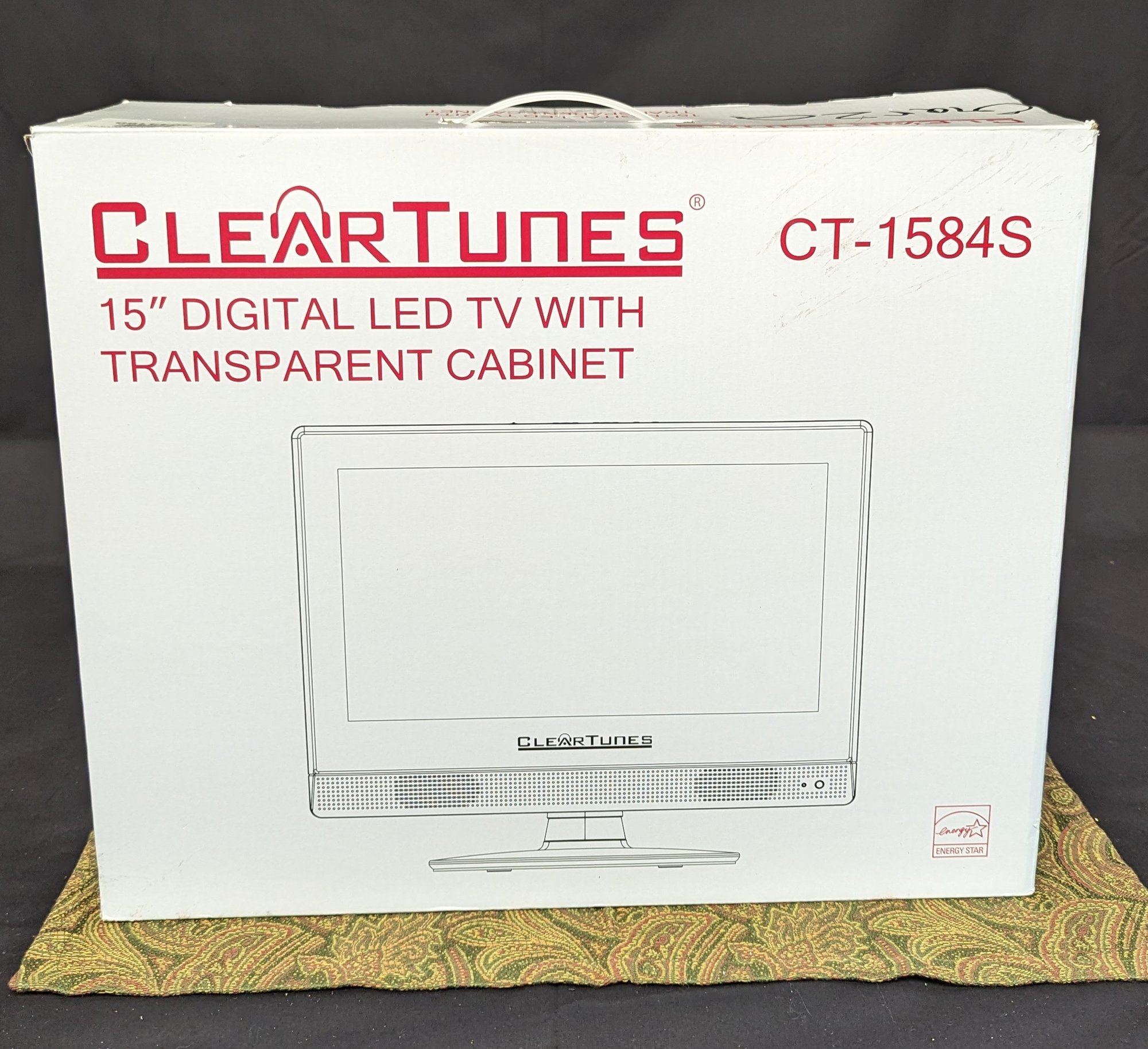 15" digital led TV with transparent cabinet. Comes with remote and cable