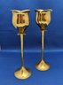 Solid brass made in India flower shaped champagne flutes. See picture for condition inside the cup. Fairly worn. 9.5" tall