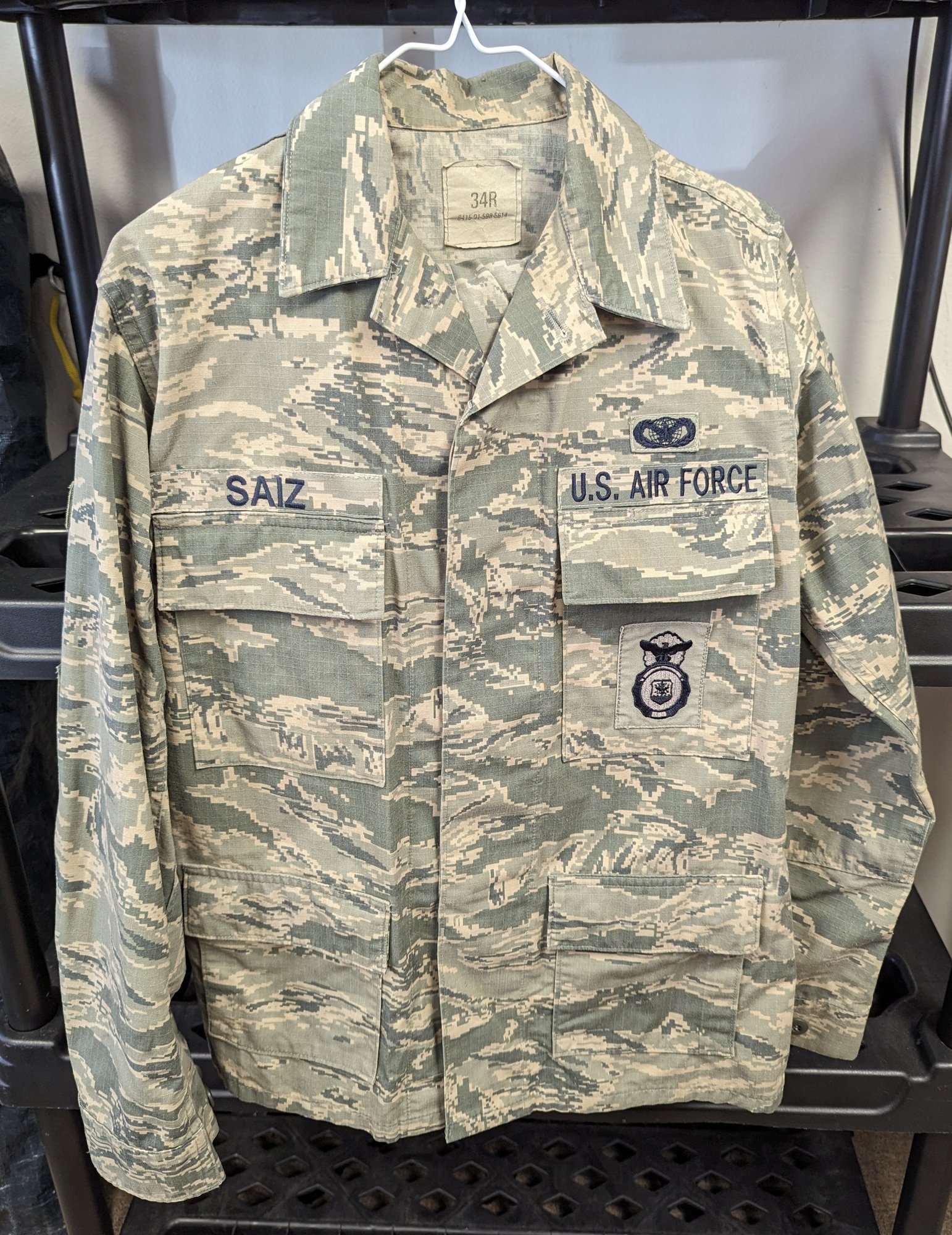 United states Air Force uniform. 'Saiz' 34 r no size listed on pants. Pants are missing front button(pictured). Some stitching coming loose.