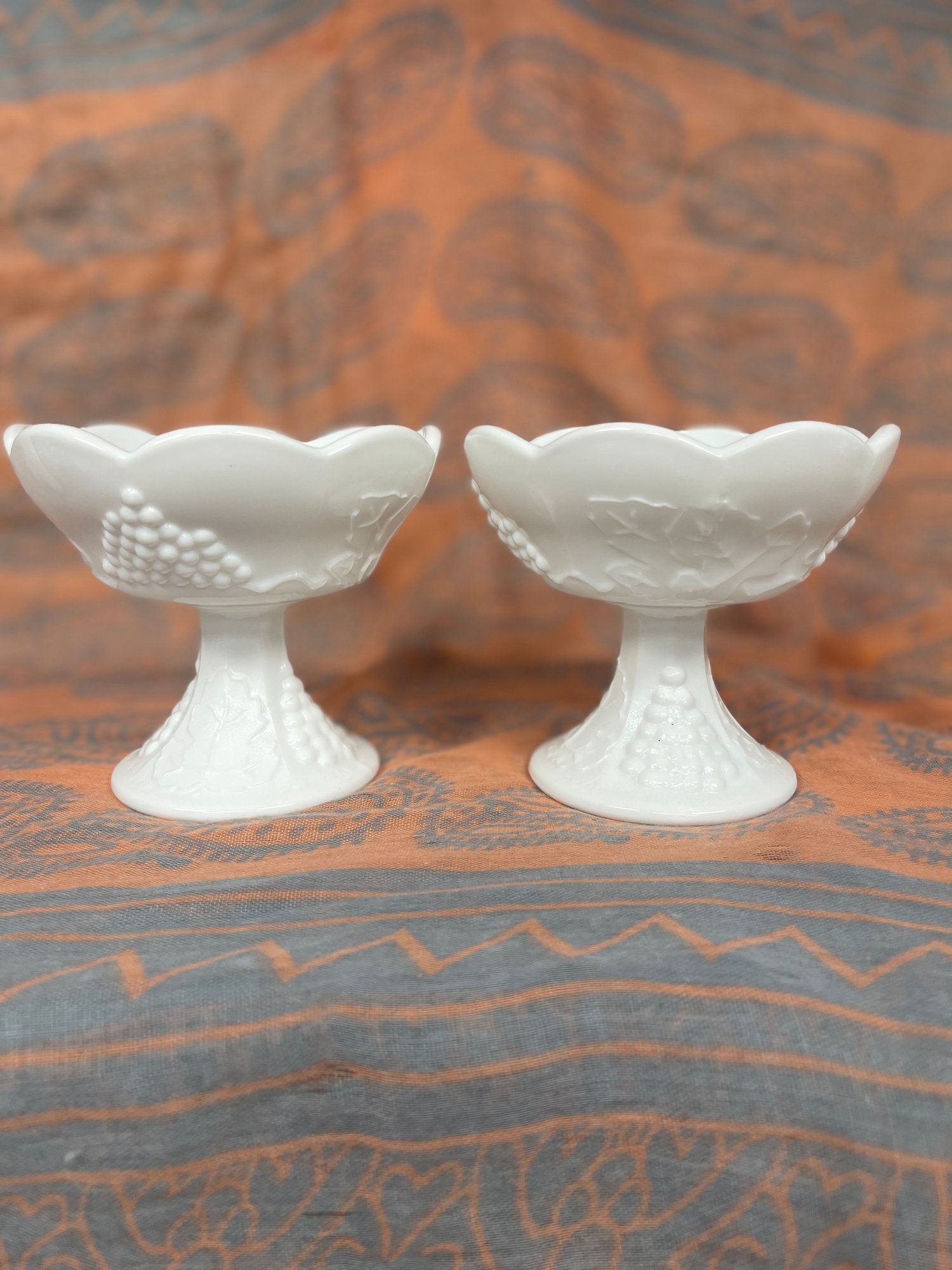 VTG Indiana White Milk Glass Grape Harvest Candle Stick Holders 4