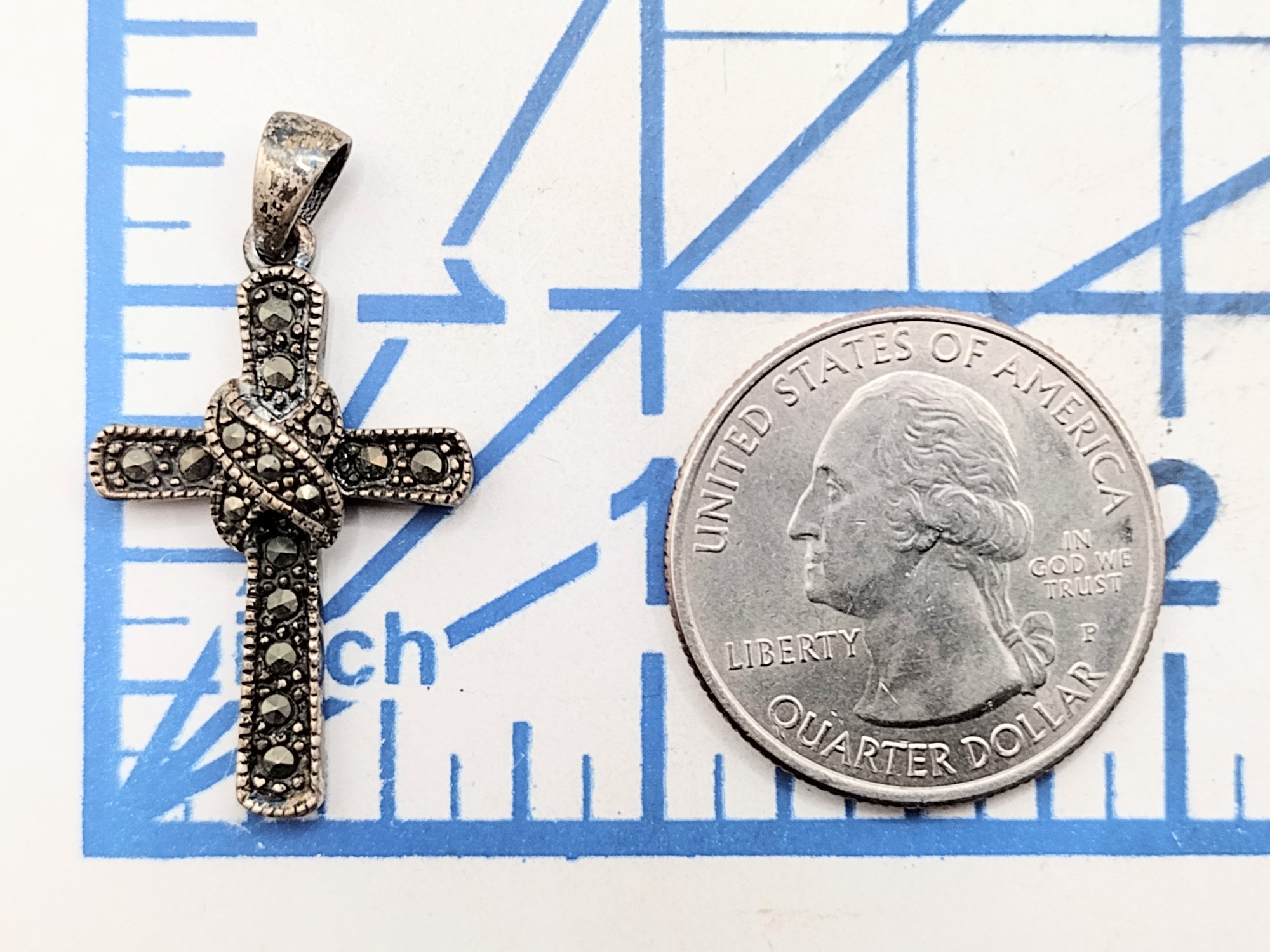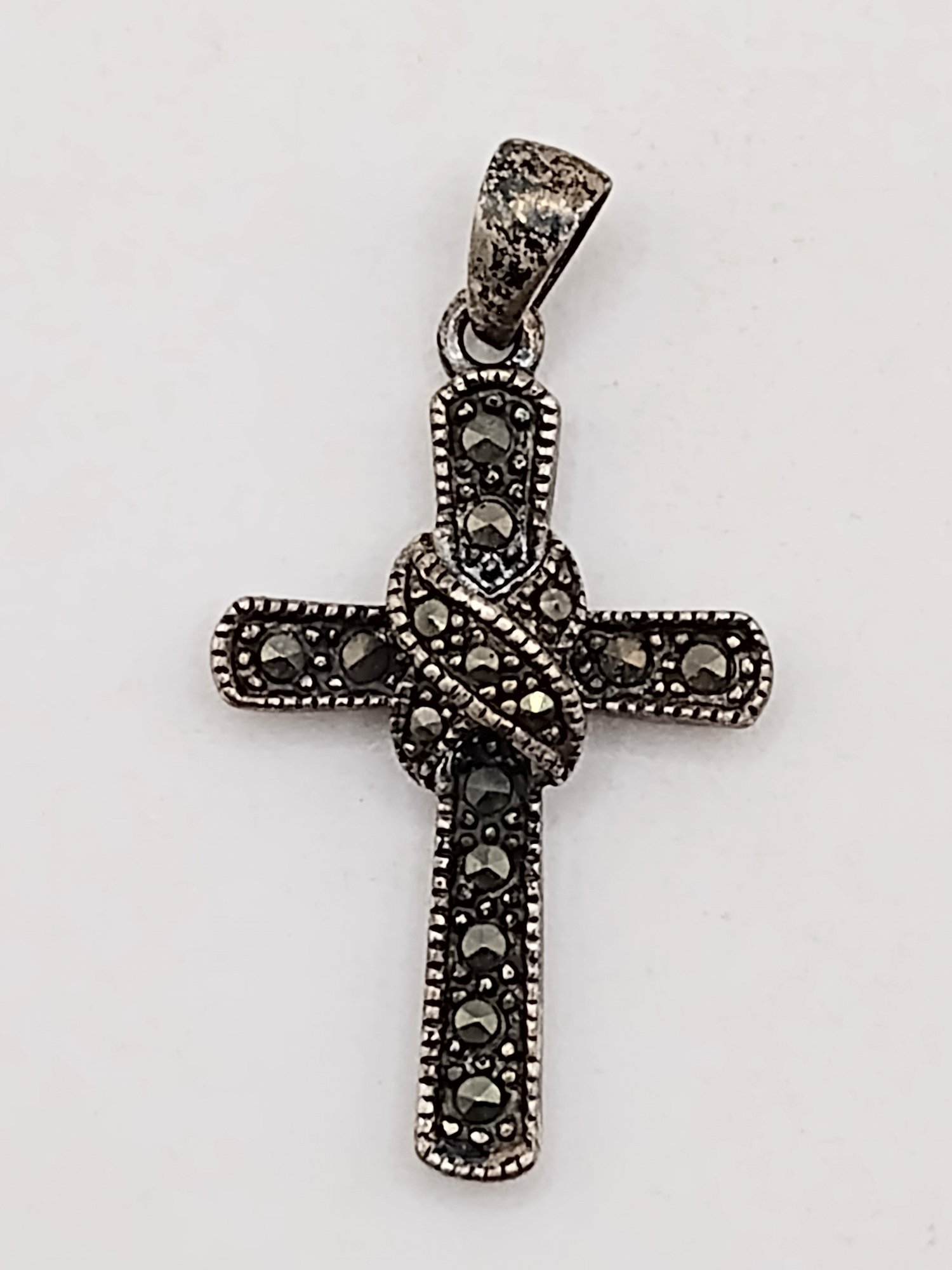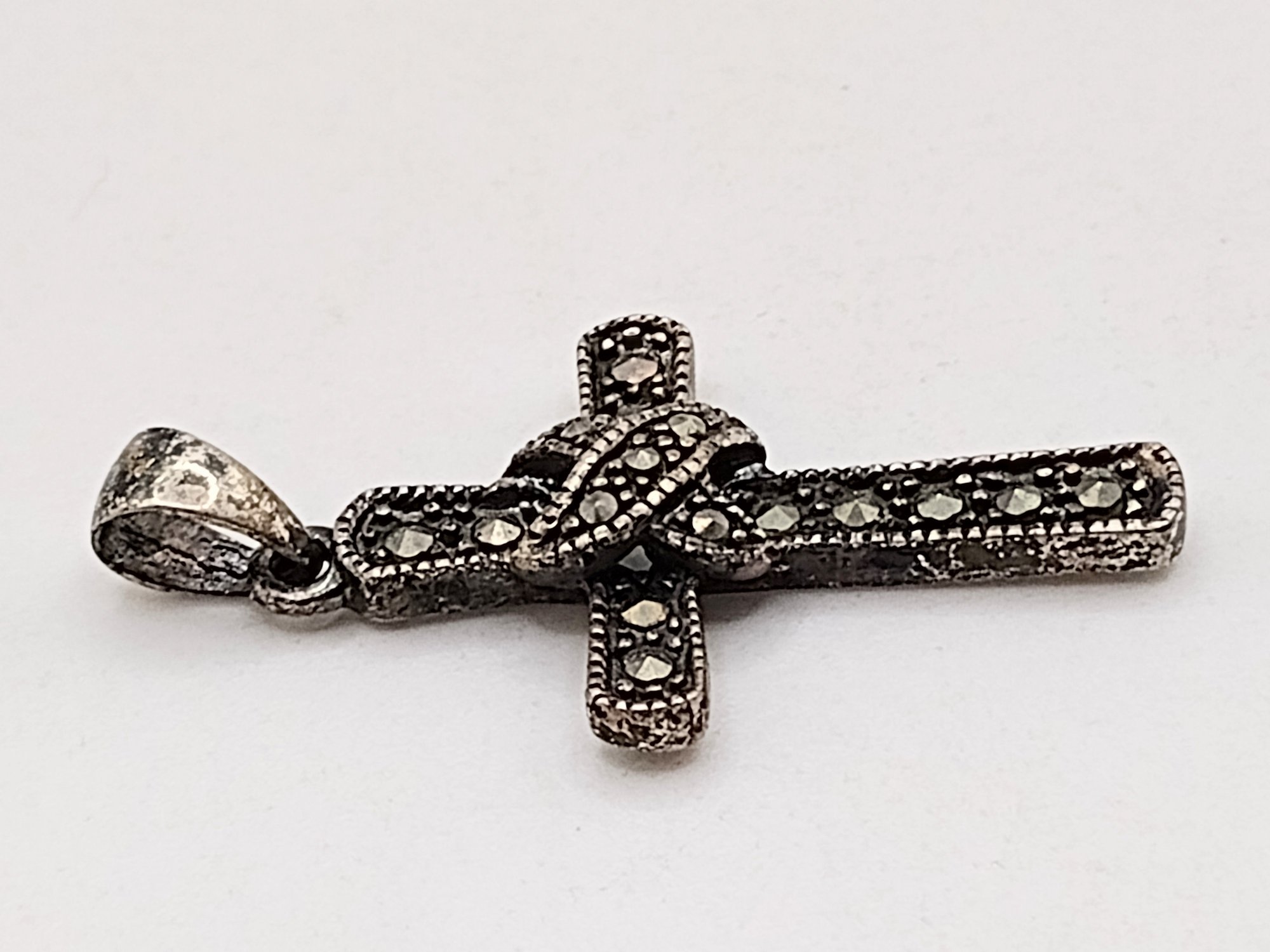 PD sterling silver Marcasite cross pendant 2.5G