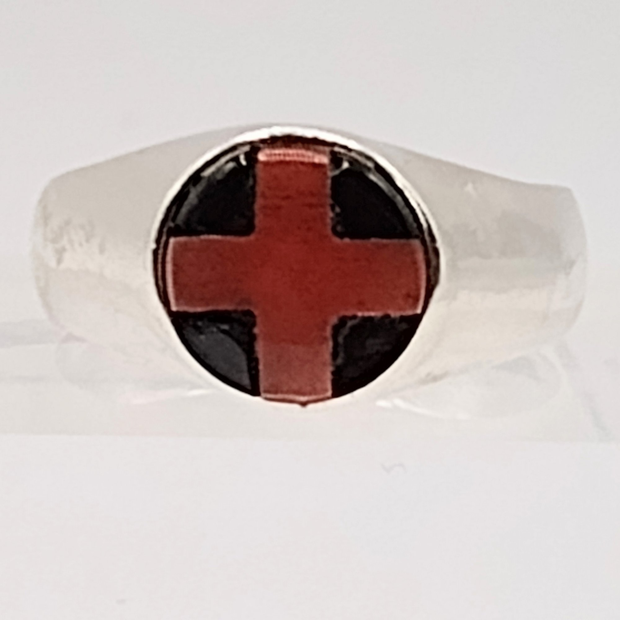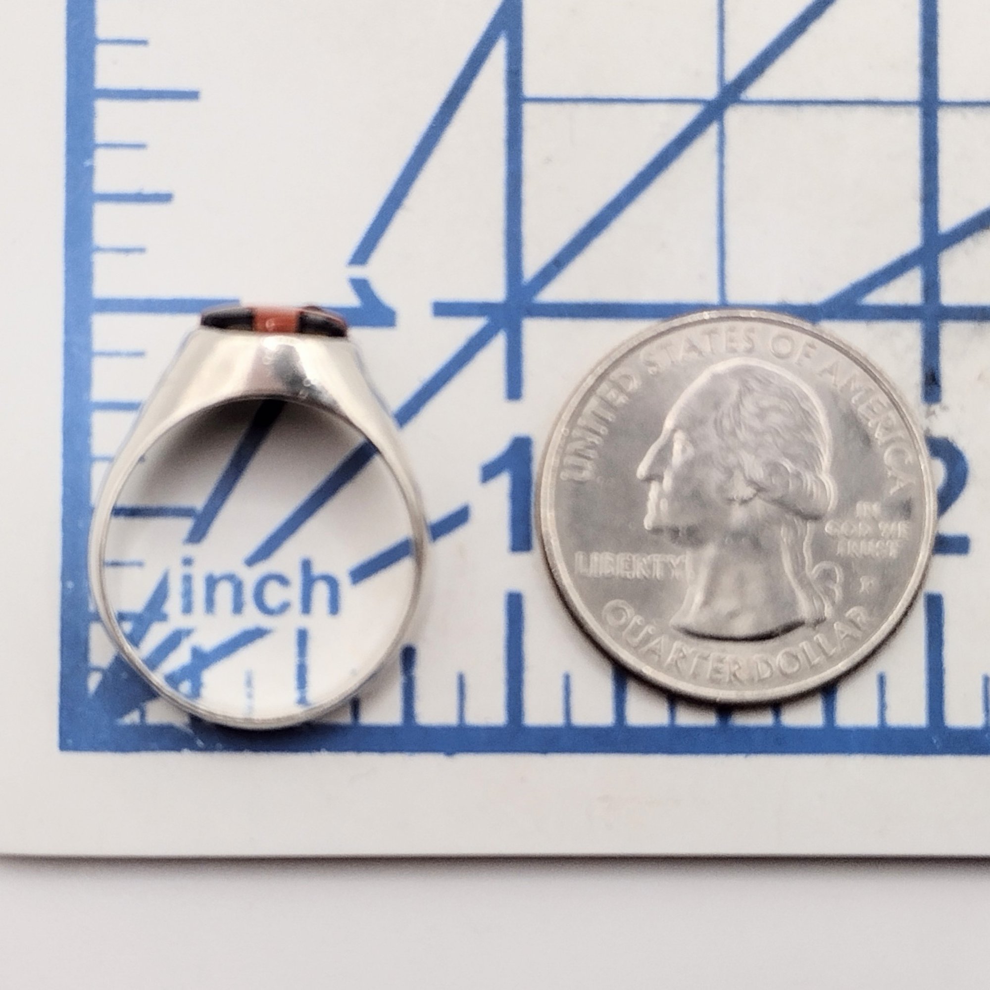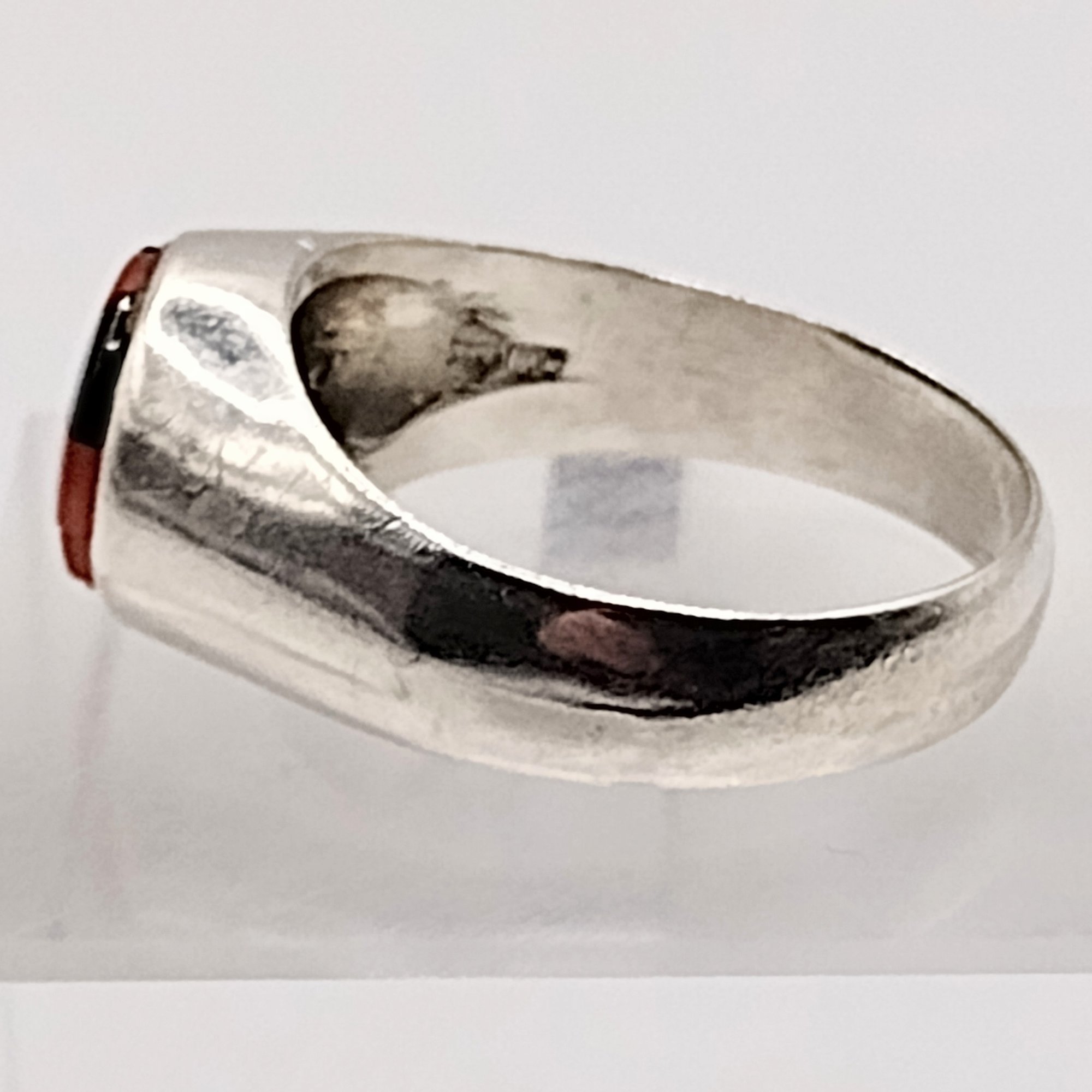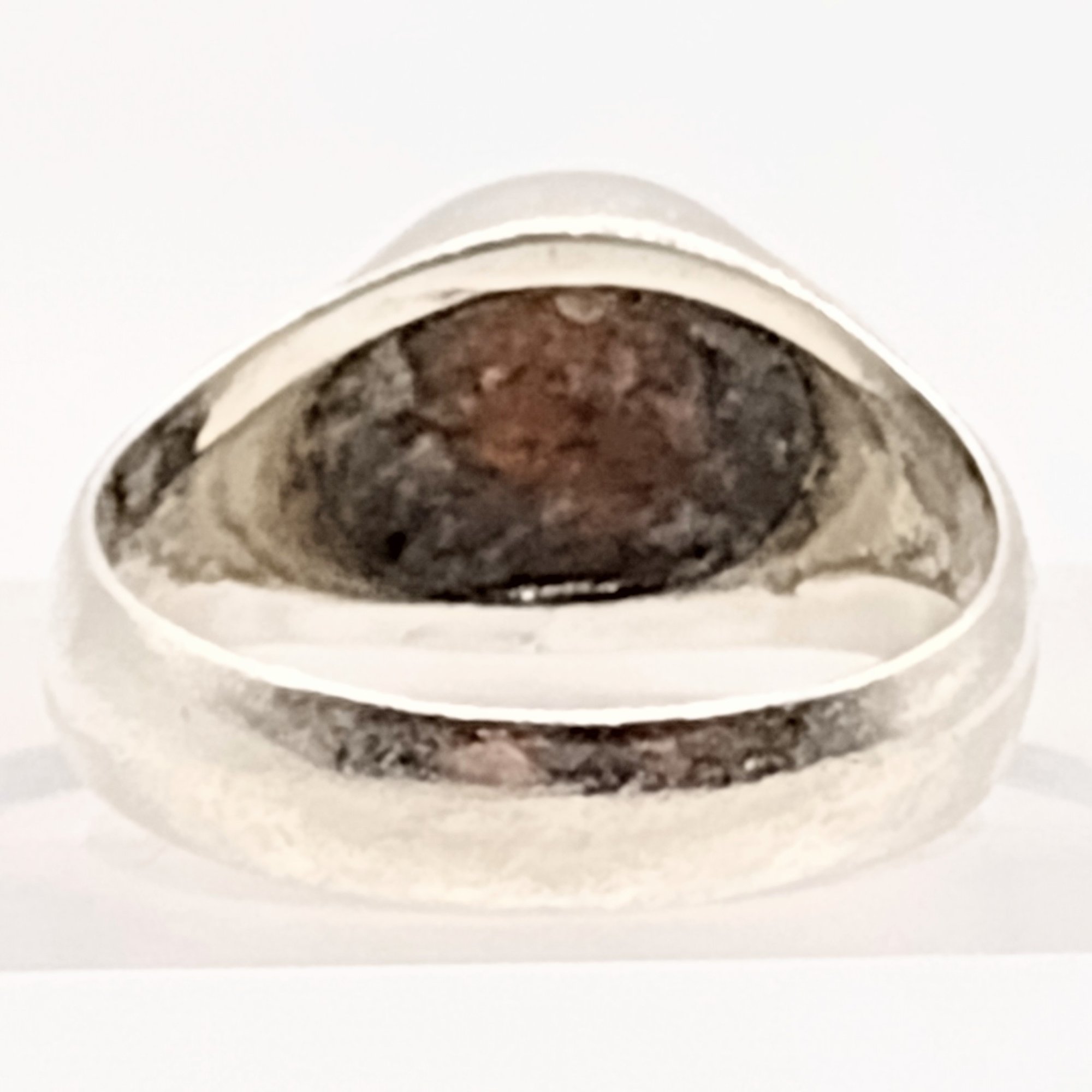 DLK sterling silver stone and enamel ring SZ 7.5 3.9G. as is missing stone