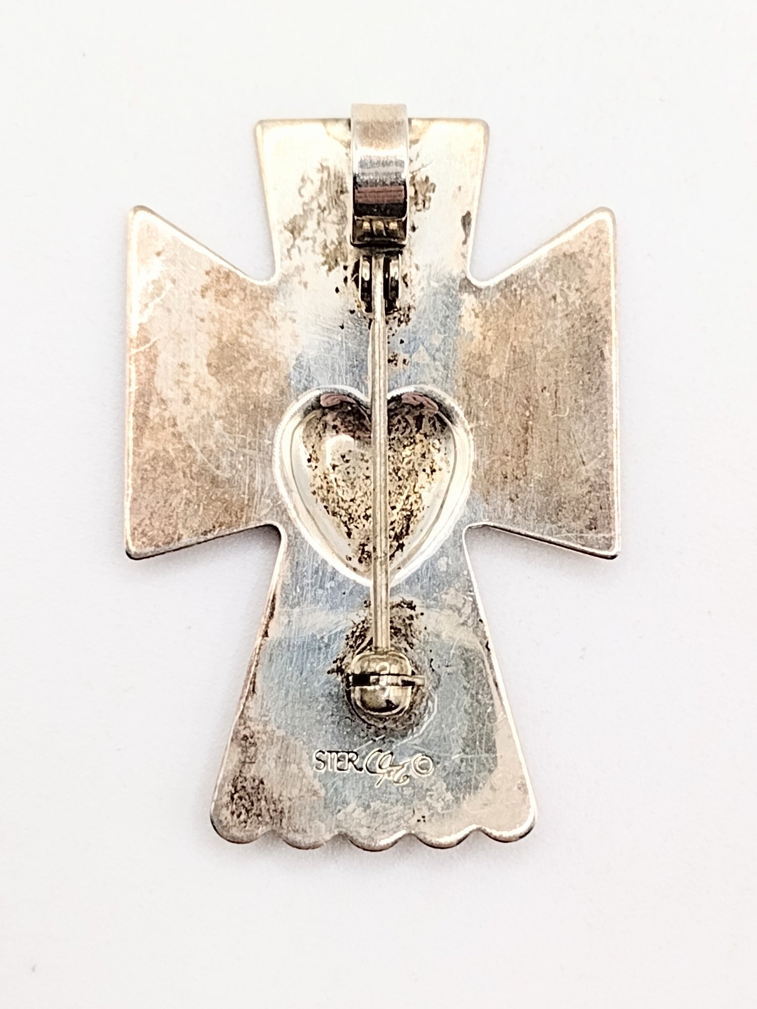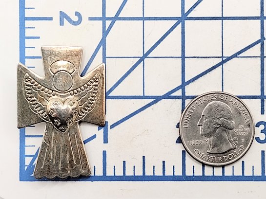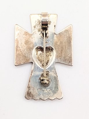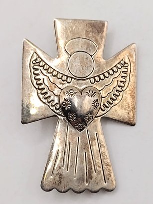 Signed sterling silver angel cross pin 5.7G