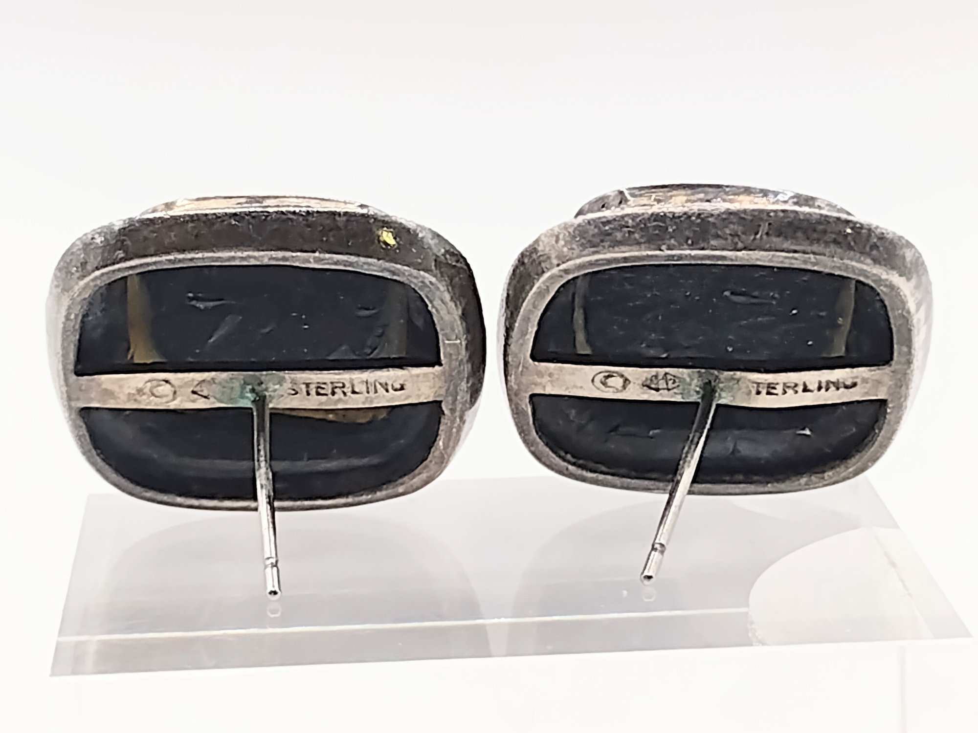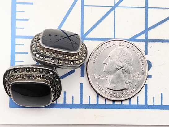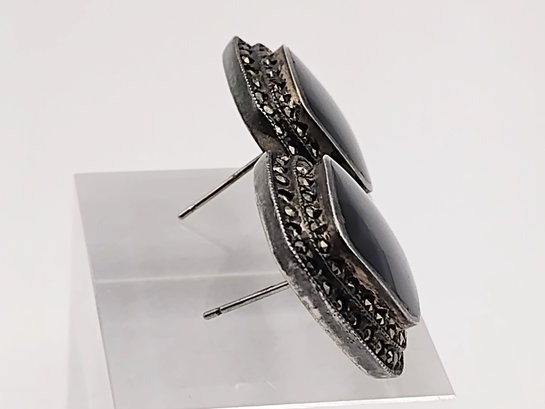 Signed sterling silver onyx Marcasite post earrings 11.2G